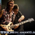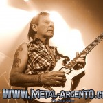 Almafuerte comenzó a las 22hs con “Homenaje” (tema apertura de A fondo blanco, 1999) ante un Teatro repleto de heavys que festejaban cada tema y cada comentario de Iorio entre temas. A Ricardo se lo notó como siempre muy hablador y también muy efectivo a la hora de recordar todas las letras.