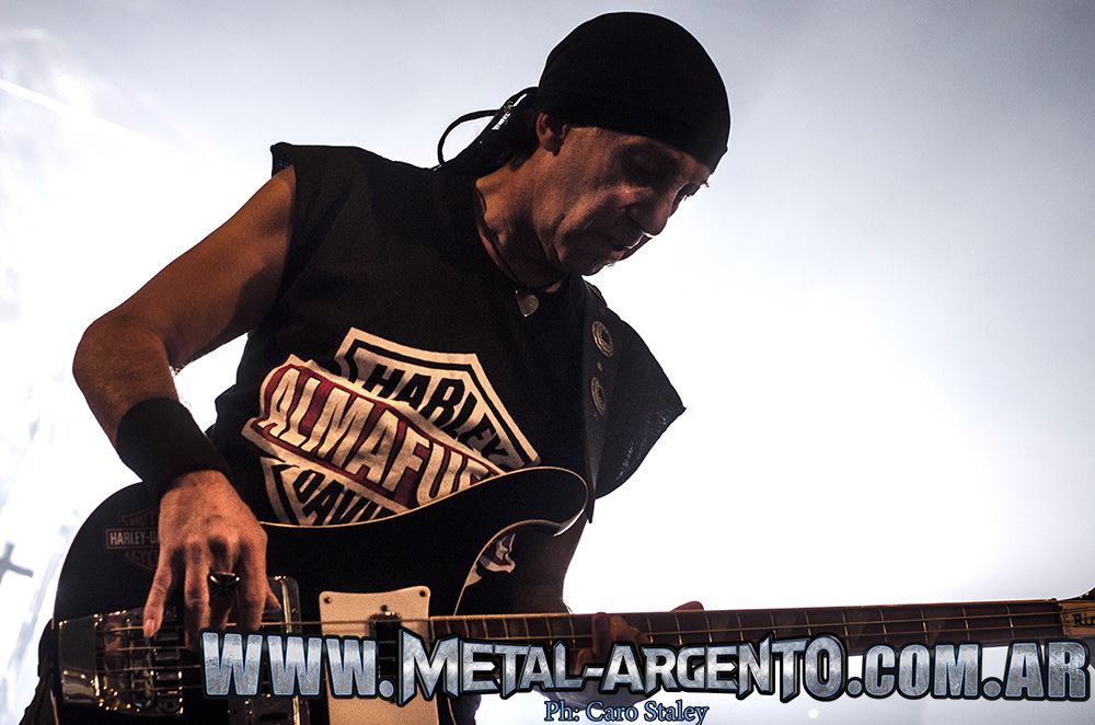 Acto seguido, “Del más allá” del álbum homónimo, se convirtió en un momento emotivo mientras se proyectaban imágenes en pantalla en recuerdo a Pappo y al Negro García López. Auspiciados por Paladini y Via Bariloche, y con la infaltable foto de Perón en la batería, el conjunto pesado argentino prosiguió con “Patria al hombro”, el track que abre Ultimando (2003). “Pa’l recuerdo” fue una de las pocas canciones que hicieron de su última placa, apuntando a una lista diversa que recorrió casi toda su discografía (a excepción del primero, Mundo guanaco). Muy buena elección ya que es uno de los temas que más resaltan de Trillando la fina. De Toro y pampa (2006) sonaron “Pensando en llegar” y “Debes saberlo”, mostrando al Tano Marciello en un nivel superlativo y una buena tarea de Beto Ceriotti y Bin Valencia en bajo y batería.