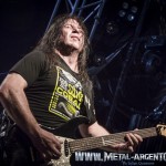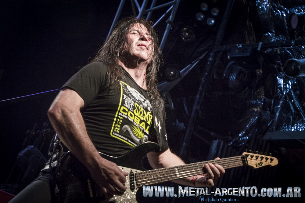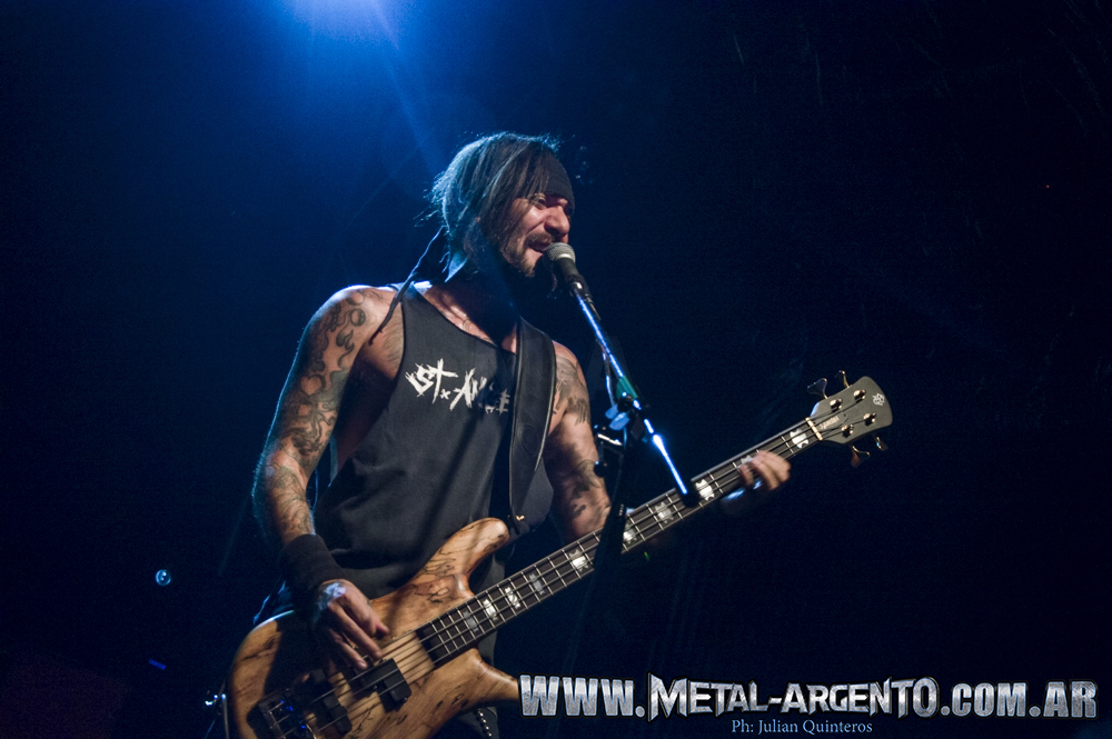 Ya había pasado hace rato la medianoche cuando finalmente salió Malón a escena. “Mendigos” fue el furioso tema elegido para arrancar, enganchado con “Culto siniestro”, ambas de su primer disco Espíritu combativo (1995). El sonido siguió siendo muy claro y fuerte, sin llegar a ser ensordecedor, con la voz de Claudio O’Connor bien adelante y mostrando un buen nivel vocal, y la batería del Pato Strunz que como siempre es una máquina. Es notoria la fortaleza y la energía de sus presentaciones en vivo, y el público lo recibe acordemente salteando y pogueando en cada tema. Luego de “Espíritu combativo”, el Tano Romano cambió su guitarra para interpretar los temas deJusticia o Resistencia (1996): “Hipotecado” y “Bajo el dominio danzante”. El bajista Carlos Kuadrado se encuentra rehabilitándose de una fractura por lo que hace ya varios meses que viene siendo reemplazado por otros bajistas amigos de la banda, en su momento lo hizo Eddie Walker (Lethal, Tano Romano, Reinará tempestad) y actualmente Marcelo Bracalente (Jerikó). No obstante, Kuadrado se hizo presente para interpretar algunos temas, pese a que le cuesta caminar. Así sonaron “Gatillo fácil” y “Cancha de lodo”.