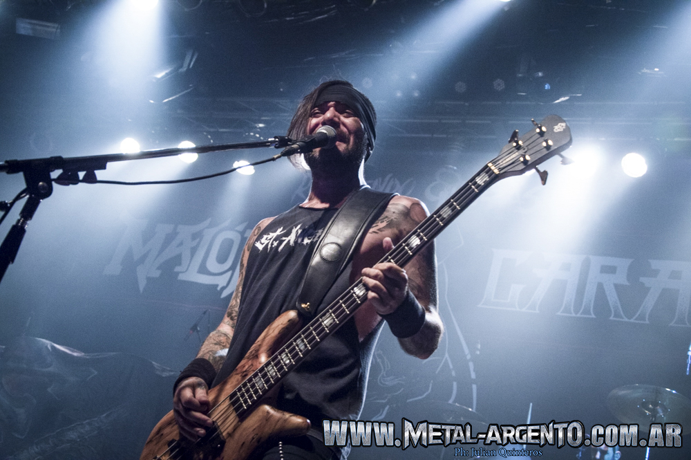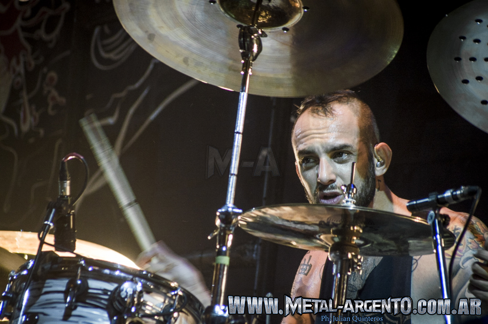 A las diez y media de la noche salió a escena Carajo con “Trágico mundo caído”, el tema que abre su último disco, el aclamado Frente a Frente. Mostrando el costado más metalero de la banda a puro riff, el público no cesó de cantar y agitar desde el primer instante, copando el recinto que mostraba un sonido excelente. Varias canciones de su último disco como “La venganza de los perdedores”, “Drama” y una más relajada “Para vos” muestran las distintas facetas del grupo y evidencian la fortaleza de sus presentaciones en vivo. A continuación, retrocedieron en el tiempo hasta sus primeras épocas con “Pura vida”, “La parca” e “Ironía”, ambas de Carajo, el primer disco que Marcelo “Corvata” Corvalán y Andrés Villanova editaron en 2002 junto a Hernán “Tery” Langer, tras abandonar A.N.I.M.A.L.