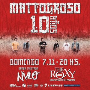 Mattogroso esta de festejo y es por eso que en el marco de su gira #SoyElDragonTour el domingo 7 de noviembre desde las 20hs se sube al escenario de The Roxy Club para festejar sus 10 años. El show se encuentra programado respetando todos los protocolos vigentes. Además, la banda encargada de precalentar el escenario será Nvlo.