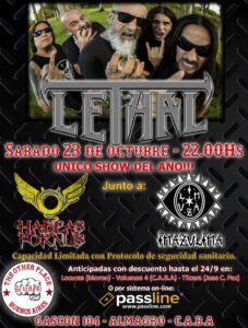 Luego de dos años de pandemia sin fechas en donde poguear, Lethal junto a dos bandas invitadas, revolucionó el sábado 23 de octubre con su único show en el año en The Other Place de la Ciudad de Buenos Aires. El barrio de Almagro estuvo poblado con chalecos de cuero, motos y metal para el recuerdo.