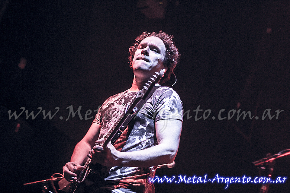 El show prosiguió muy arriba con canciones nuevas como «The lost song part 1», enganchada con la parte 2, en las que nos deleitaron con una composición atrapante y la primera participación en la noche de la cantante Lee Douglas, dueña de una hermosa voz. «Untouchables part 1» y part 2, una seguidilla similar que dio inicio a su disco previo Weather Systems (2012) nos trasladó por diversos senderos, pasando del sonido más optimista de la primera parte a la melancolía de la segunda. Entre tanto, mi mente no dejó de repetir las líneas «I had to let you go to find my way back home». En la primera parte del show continuaron repasando canciones de sus últimos discos como «Thin air» de We’re here because we’re here (2010), la emotiva «Ariel» y la más progresiva «The lost song part 3» del disco que vinierno a presentar, «The beggining of the end» de Weather Systems que contó con un espectacular solo de guitarra, o «Universal» de We’re here because we’re here(2010). Fueron canciones muy bien recibidas por un público si bien diverso, estaba conformado en buena parte por metaleros. Daniel luego agradecería el gran apoyo brindado a sus canciones más recientes, a diferencia de otras bandas donde los temas más festejados siempre son los viejos. Un hecho llamativo que no logré terminar de comprender fue cuando durante un solo de guitarra un fotógrafo se acercó al escenario a buscar un buen ángulo y el guitarrista le arrojó un puntapié mostrándose algo molesto.