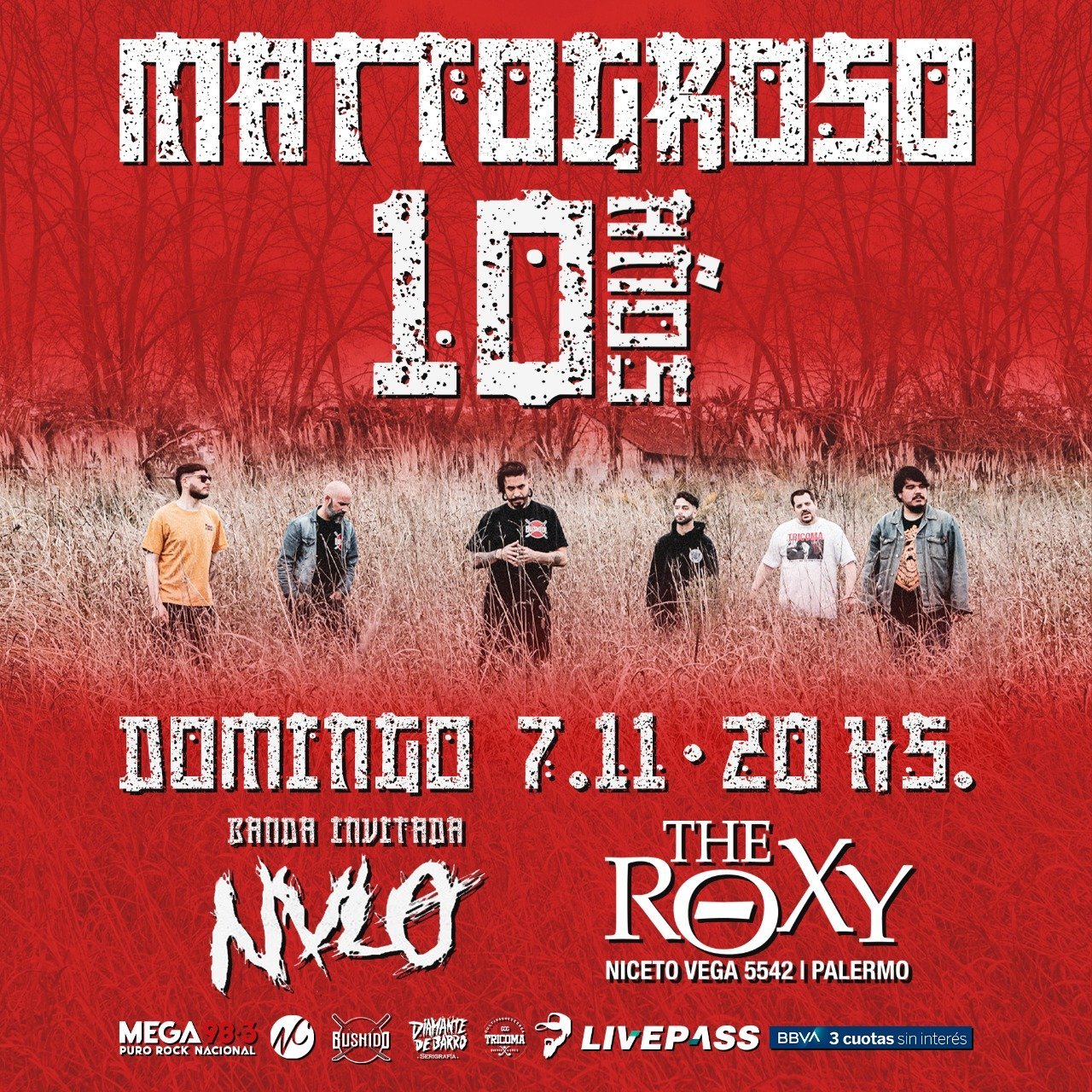 Mattogroso se encuentra festejando sus 10 años como banda, y para darle una celebración propiamente dicha y de manera oficial, la banda se presentó el pasado 7/11 en The Roxy junto a los chicos de Nvlo, con entradas agotadas.