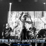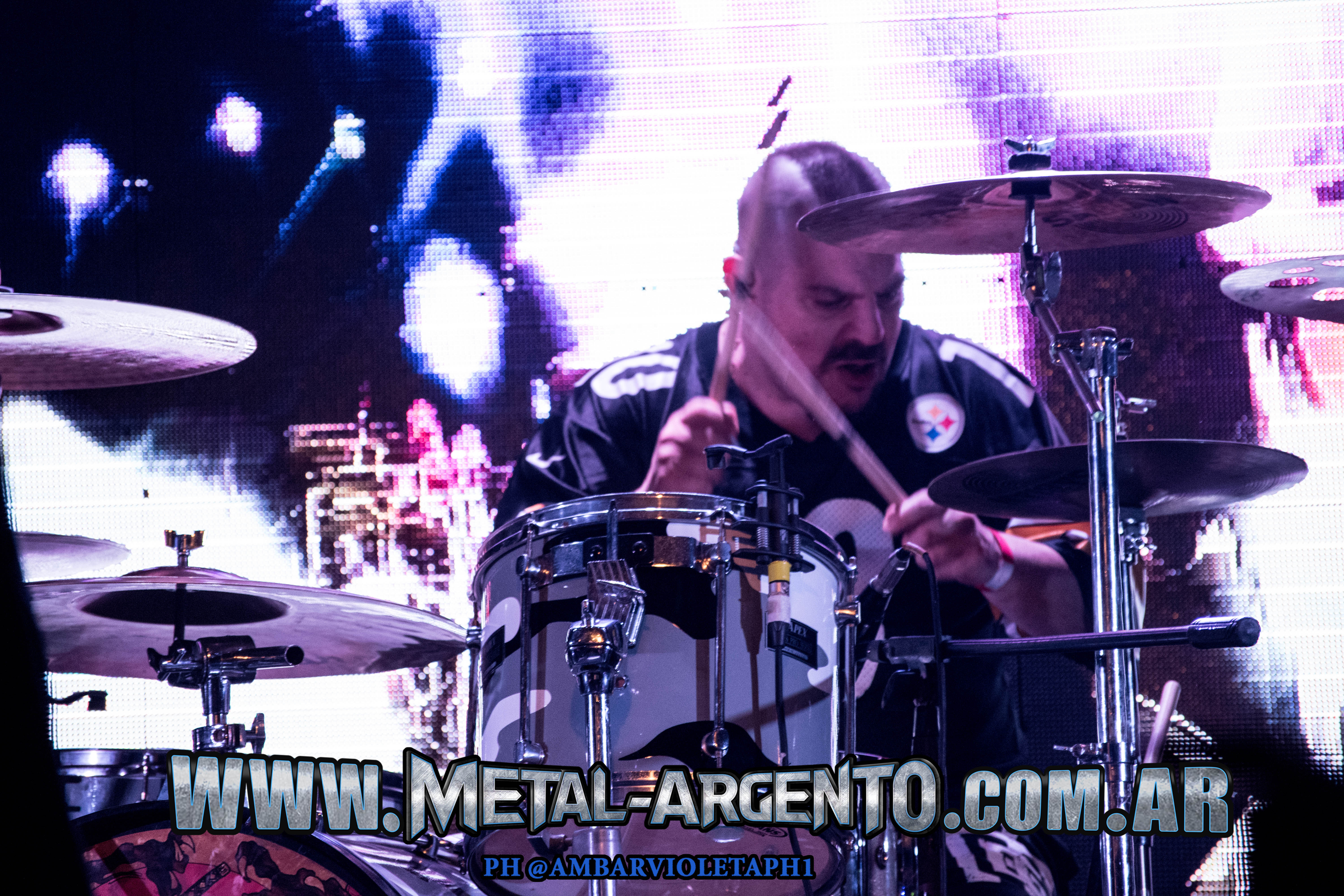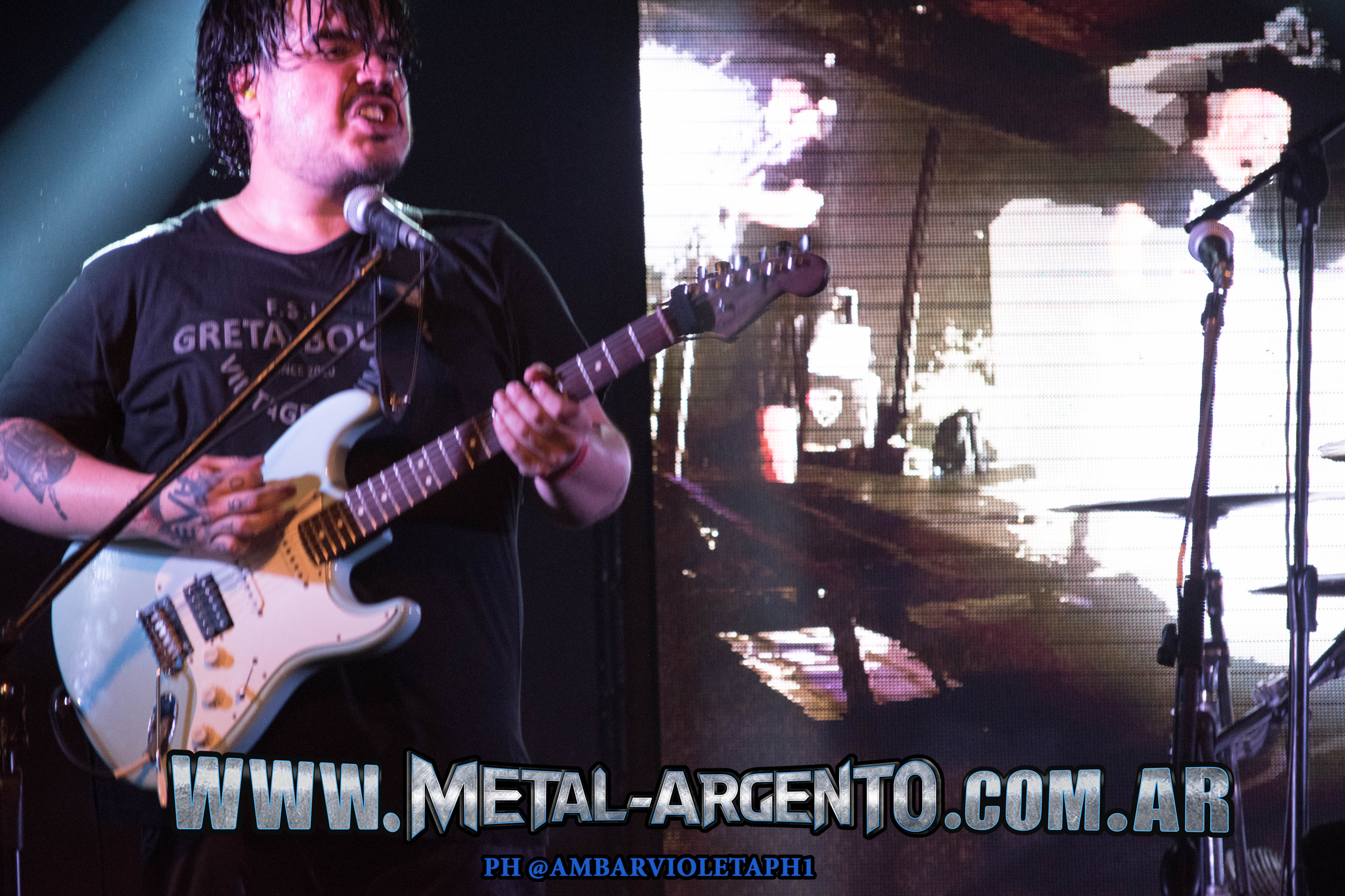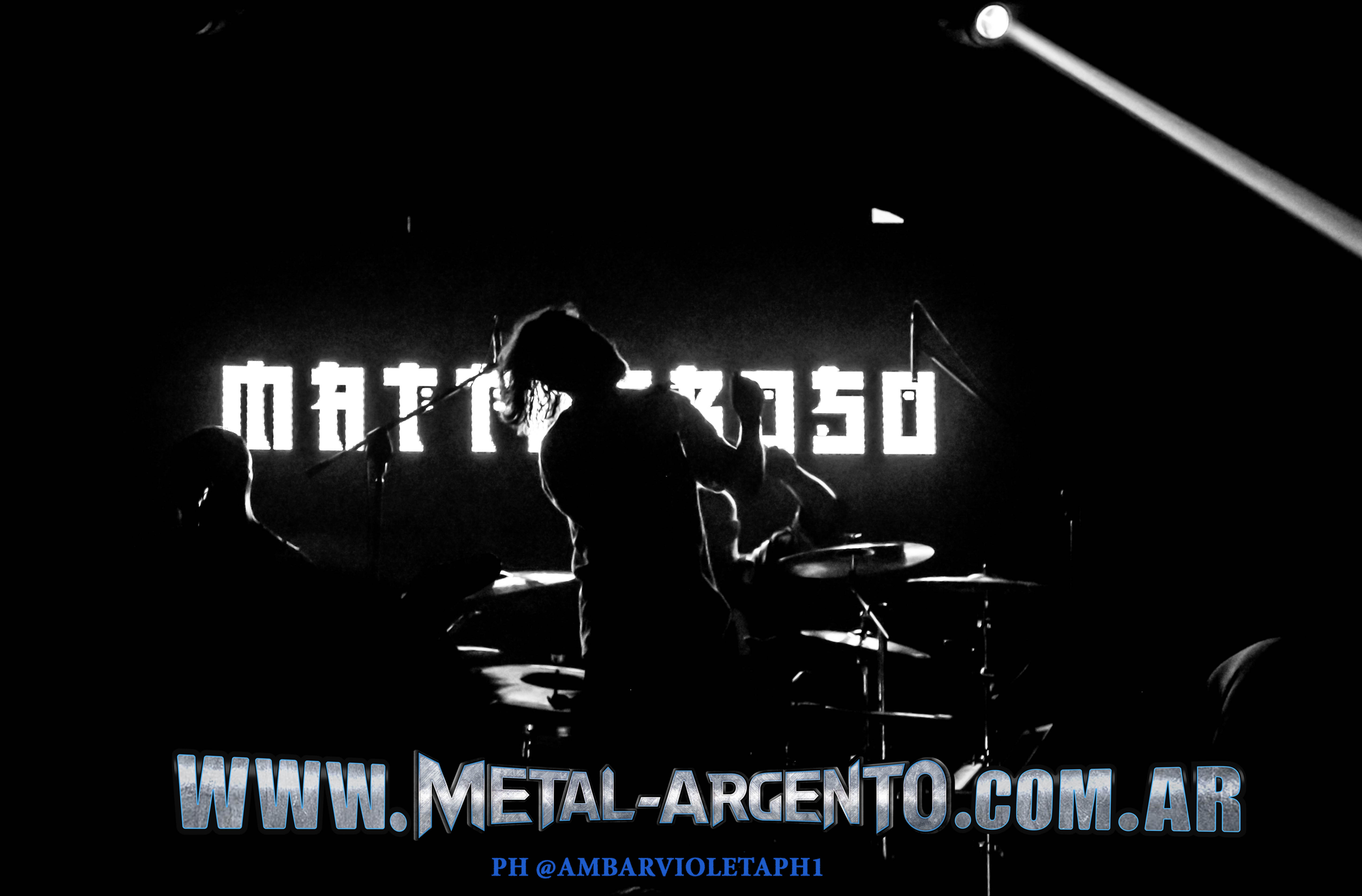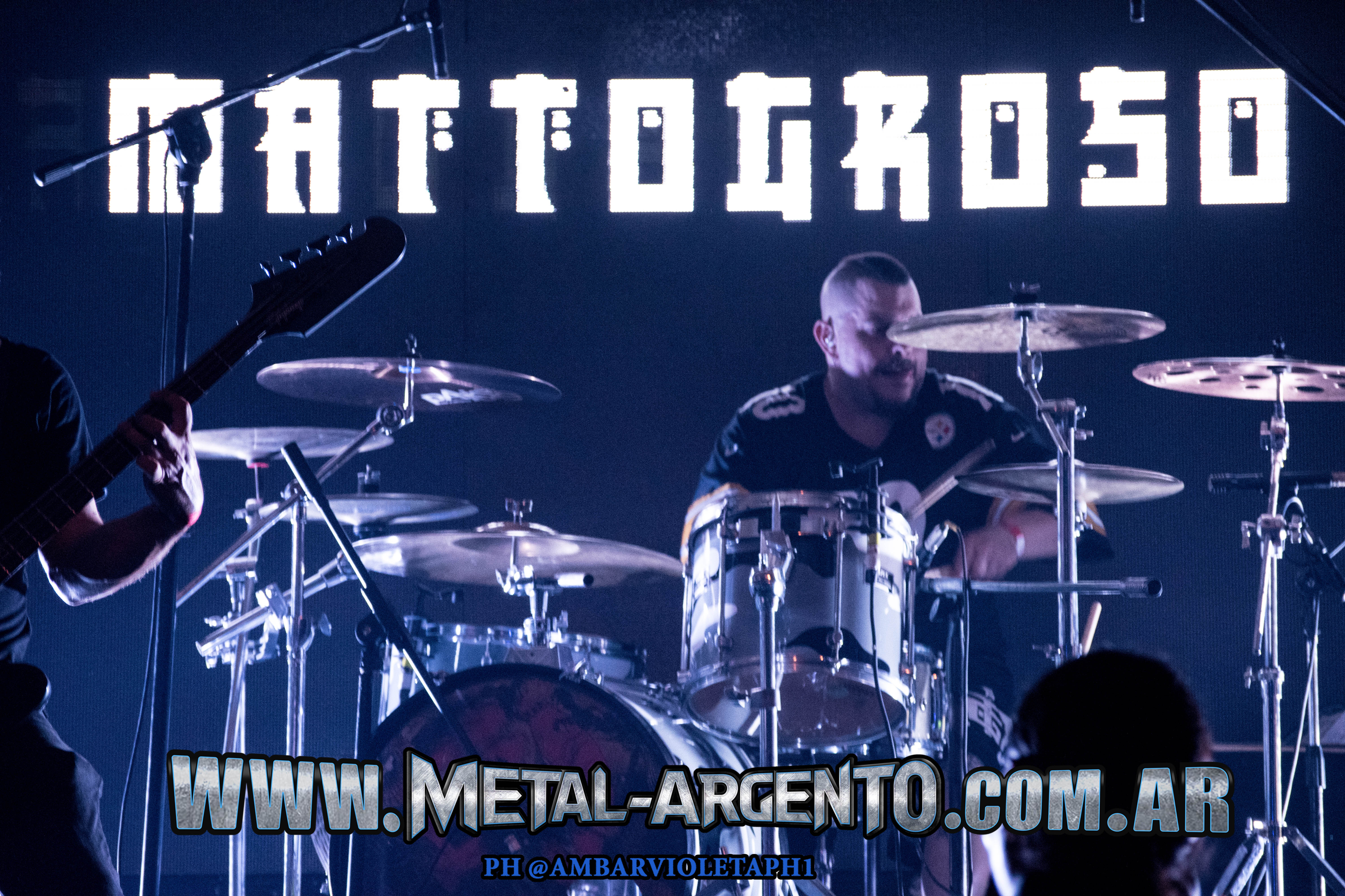 Para el momento de los cumpleañeros, el Roxy estaba notablemente más concurrido, mesas llenas y gente al fondo de pie. Al correrse el telón, se lo podía ver a Gonzalo Arce sobre su tarima, en pose símil oriental y los primeros acordes de «A la Batalla», tema perfecto para abrir a puro riff violento. Se notaba la energía de la banda tan solo con la primera canción. Casi sin pausa alguna, «La Sangre de los Fuertes» vino a sacudir al público que empezaba a subir la temperatura. Si bien Mattogroso es una banda conformada por gente muy carismática y enérgica, se los notaba extremadamente felices, y no es para menos claro. Luego de «El Tiempo es Hoy» y de manera muy amable y hasta riéndose, Gonzalo pidió que se corrieran las mesas. El público pareció haber estado esperando dicha orden, porque las mesas fueron corridas de inmediato. Arrancaría un nuevo show. Luego de unos pasos de cumbia acompañados por la percusión, «Mensaje de Destrucción» dio inicio a los pogos con Arce siendo partícipe activo de mas de uno. ‘El metal se baila‘ diría luego del tema, y aprovechó la ocasión para agradecer a todos los presentes, a quienes acompañaron a la banda en estos 10 años y mencionando lo contentos y emocionados que estaban con este festejo.