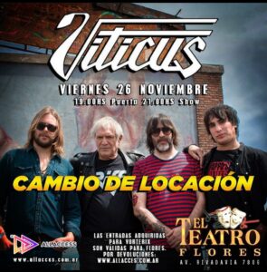 Por motivos ajenos a la banda, Viticus finalmente volverá a tocar en vivo en el escenario de El Teatro Flores y no del Vorterix como estaba prevista. Es necesario destacar que las entradas adquiridas son totalmente validas.