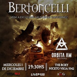 Bertoncelli inició al show con «Sangre por el Rock n’ Roll» de su mas reciente disco Nunca Digas Nunca. Abrir con esa canción fue toda una declaración de principios para con el rumbo de la banda y de su último disco. Más cerca del rock que del metal. La banda formada por Christian Bertoncelli, Marcelo Lemma (bajo), Matías Fagés (batería), Juan Huenchuñir (guitarra) y Nahuel Soto (guitarra), se mostró muy enérgica y contenta. Soto se paseaba por todo el escenario, y el trabajo de Lemma fue realmente destacable. Canciones como «Nunca Digas Nunca», «Mensajes Sobre el Mar», «Mujer de Luz» y «Nunca Perdió la Fe», de su último disco, fueron presentadas en sociedad. Hubo lugar para los covers, algunos presentes en Nunca Digas Nunca, otros elegidos por el propio Christian por el simple hecho de haber sido influencia y por el gusto mismo de tocarlos. Así, «A Partir de Mañana» (Alberto Cortéz), «Bajan» y «Seguir Viviendo sin tu Amor» (Luis Alberto Spinetta), «Vagabundear» (Joan Manuel Serrat) sonaron en el recinto. Previo a un pequeño set acústico, Christian dijo «Es un disco de rock, escúchenlo así», como para reforzar la idea y dirección de la banda. Una perlita de la noche fue «En Tiempos de Estío», de Imperio. Del primer disco de la banda, editado hace 10 años, sonaron «Pequeño Gigante» y la que cerró la noche, «Sin Miedo a Perder».