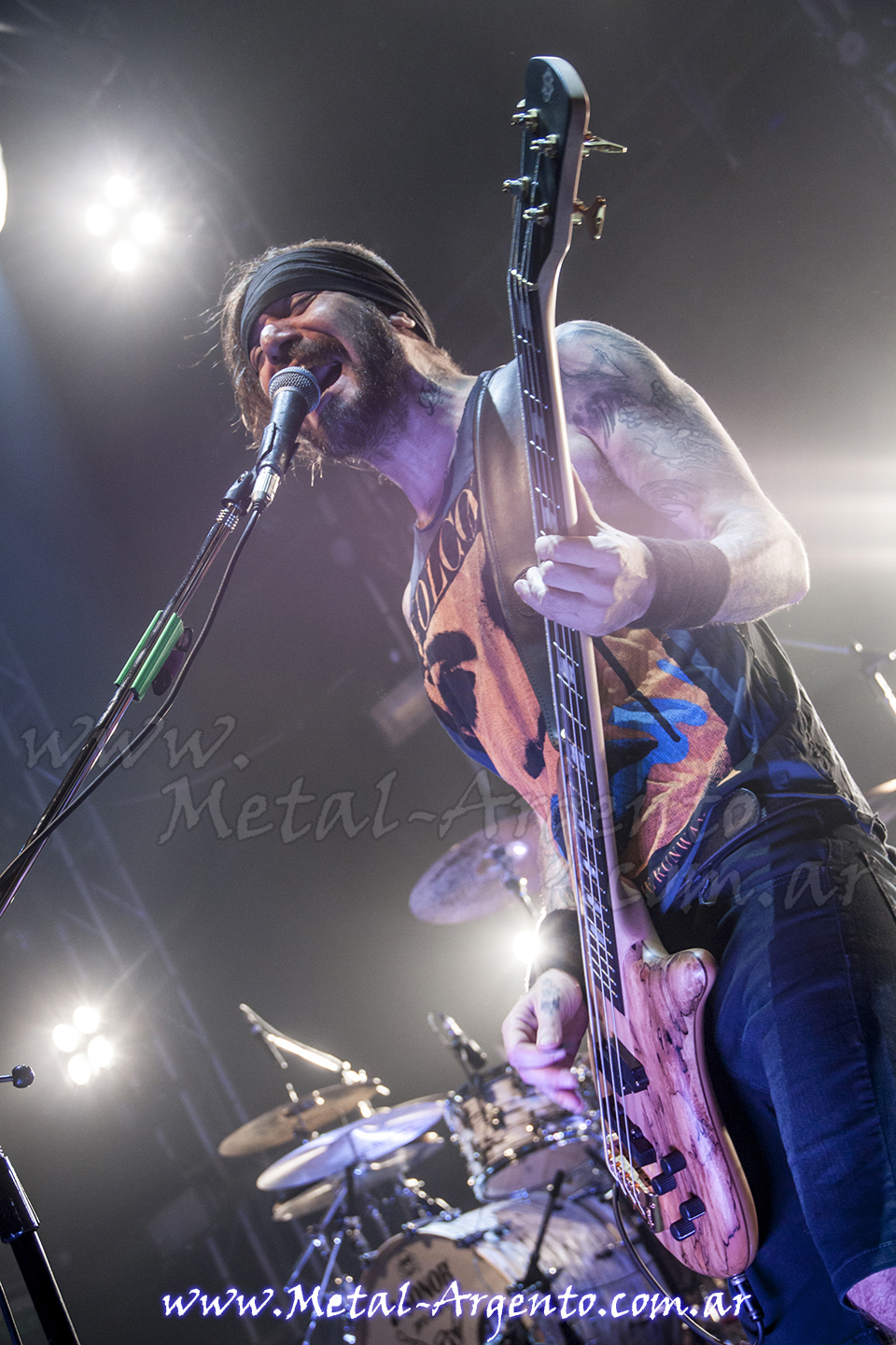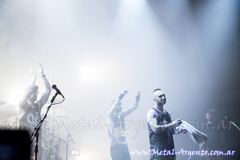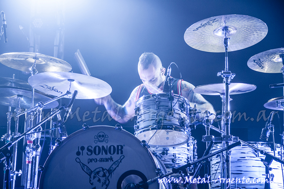 Siendo las 21 hs puntual como suele cumplir la banda, Carajo sale a escena con “Trágico mundo caído” intro que fue coreada por los fans, dando a detallar que el teatro se encontraba completamente colmado por los carajeros de todas las edades, porque cabe destacar que a pesar que sea música pesada se vive un clima cálido, energizante y para todas las edades hasta los pequeños carajeritos que se ve a los costados con sus madres. Sin respirar esta noche pesada recién comenzaba con “La venganza de los perdedores”, “Luna herida”, “Libres” sumado al mosh que no paraba ni un instante, la transpiración aumentaba junto al pogo, el agite y sin siquiera poder pensar solo disfrutar de toda la pasión y adrenalina que emana Carajo. La noche siguió con “Shock” para volver al pasado con “La guerra y la paz”, “Hacerse cargo” y “Resistiendo con ideas” ya con ocho canciones tocadas todavía había mucho aguante por parte del público sumado a la potencia de Andy Vilanova en batería que golpeaba con una fuerza extrema los parches pasándonos por encima con su arrolladores bombos y platillos.
