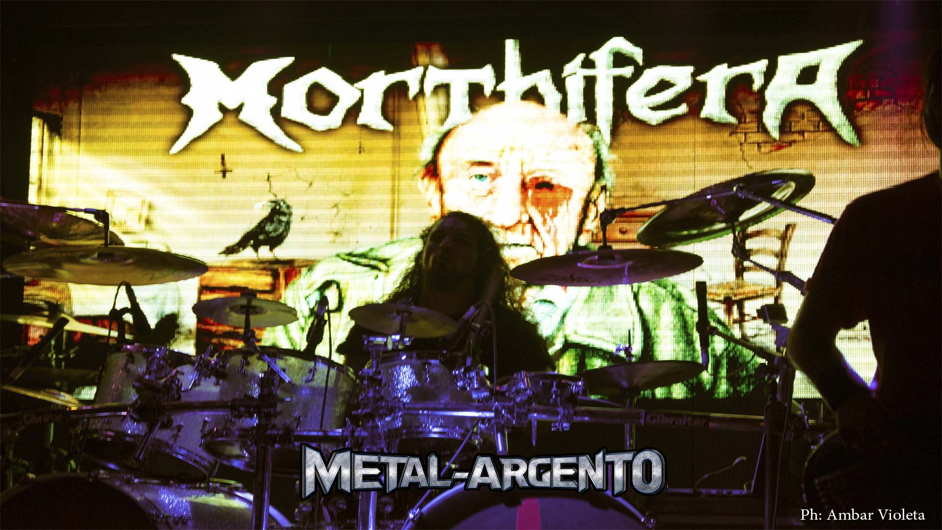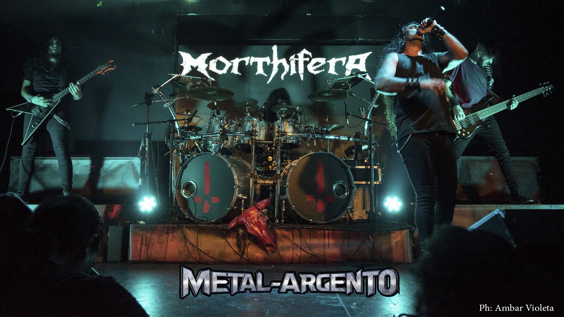 Morthifera tiene una propuesta clara. Y es una propuesta contestataria. Ya sea por su postura anti eclesiástica como por la denuncia social frente a la corrupción y el abuso de autoridad. Todo corresponde a la mismo: una denuncia al sistema. Bajo esta premisa «Apostasía» fue la encargada de abrir el concierto, que dicho sea de paso estreno videoclip cargo de Denn Producciones horas antes del mismo. ‘Es necesario invertir la cruz, es necesario invertirla para destruirla’, grita como profanador Peréz. Entre él y el resto de la banda un peregrino símil pagano, sin rostro, encapuchado prende antorchas en varios puntos del escenario. Continuando con las denuncias sociales, «Terapia de Represión», marco una de las tantas interpretaciones del Nunca Más. Porque Nunca Más trascendió de no volver a permitir una dictadura cívico clerical militar, a no permitir atropellos de abuso de autoridad como el asesinato por la espalda a quemarropa del docente Carlos Fuentealba por un policía de la provincia del Neuquén durante un contexto de represión. En la pantalla de The Roxy, el video realizado por Heresy años atrás, pero igual de presente.Luego, llegaría el turno de temas como «Norte infernal» y del cover y clásico de Sepultura «Troops of Doom» del disco Morbid Vision (1996).