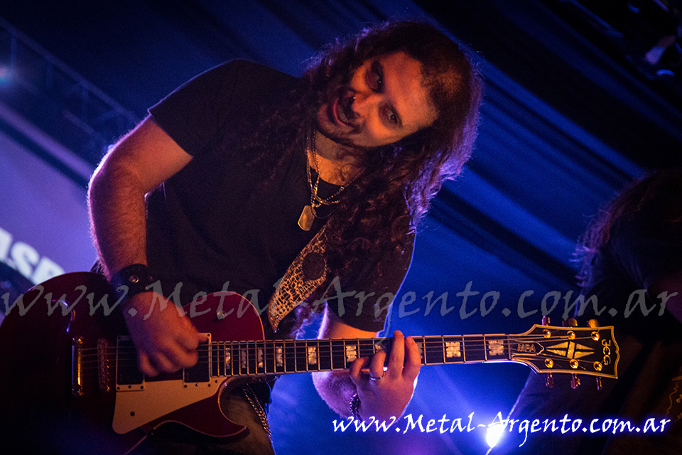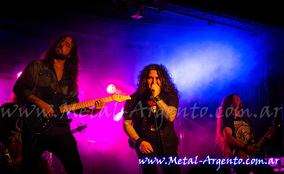 Eran ya las 21:30 cuando subió Arraigo, quienes siguen atravesando fronteras y buscando nuevos horizontes ya que fueron la única banda folk dentro del marco de un festival power. Su propuesta única que fusiona con excelencia la música pesada con los sonidos tradicionales latinoamericanos la plasmaron en su disco debut Fronteras y horizontes (2012) y del mismo ejecutaron temas como “Carnaval de soledades”, “Nehuen (fuego del alma)”, “En el nombre del padre” y “Vidala para que sigas”. Además de la aún inédita “En tiempos de cueca, pañuelos negros” tuvimos momentos especiales como “Cadenas y antifaces” con la participación de Elías Abalos de la murga “Los calaveras de Constitución” y para el final el aporte de Julia Peralta con su bandoneón en “Los gritos del sótano”. No puede dejar de destacarse el mensaje que transmite el frontman Pablo Trangone acerca de repensar qué es lo pesado en el metal y de la fusión como una metáfora del diálogo, además de la consigna de defender la educación pública.