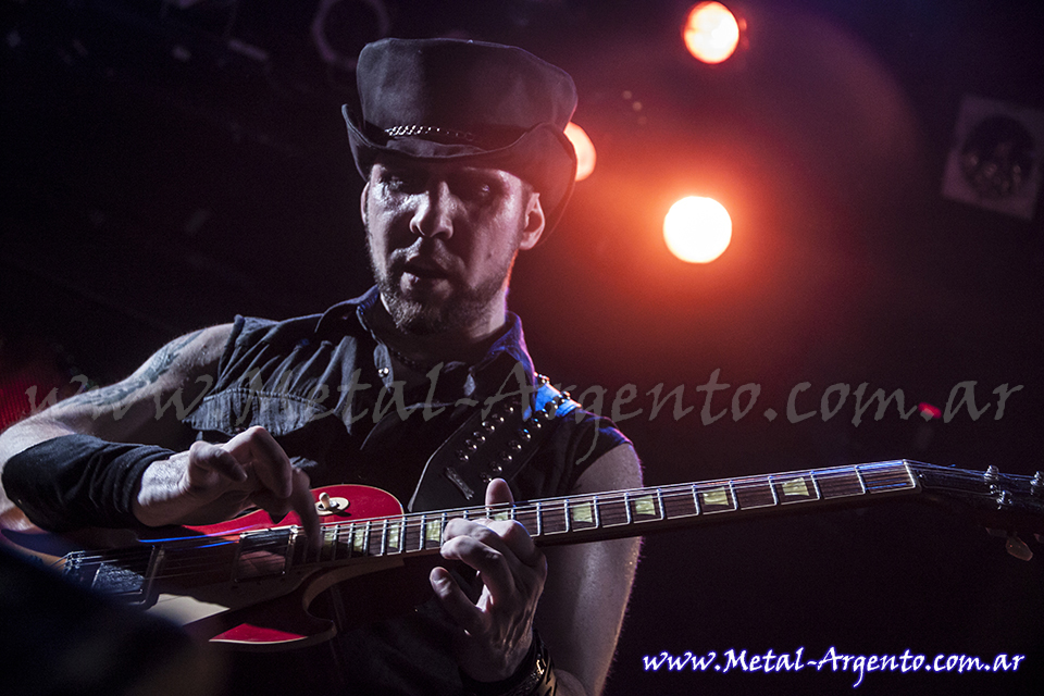 Previo a esto se presentó Charger X una banda de neto hard rock de buen nivel ante un gran número de presentes. Triddana conformada por Diego Valdez, Juan José Fornés, Pablo Allen, Diego Rodriguez y Ranz arranco a las 21.30 horas. Con telón cerrado sonó el Main Theme de la serie Games of Thrones (cabe aclarar que es una reversión de la banda argentina) para así una vez con luces encendidas sobre sus rostros y escenario al descubierto arranquen con «Becoming». Era la primera vez que veo a la banda en acción, tienen un increíble poder escénico y más aun lo que generan en sus seguidores. Saltos, gritos que no cesaron en ningún momento. Temas como «All Souls Night», «Gone With The River» y «The Might in My Blood» fueron festejados con gran euforia. Lamentablemente uno de los tres bajos de Diego Rodríguez sufrió inconvenientes técnicos, y no sonaba. Aun así esto no termino de bajar puntaje en el óptimo sonido del bar. El listado fue continuo y parejo, sin quiebres, efusivo y de demandante calor, cosa que vio reflejado tanto en Diego acercándose a los ventiladores como en aquellos que no pararon de sudar adrenalina poguera. El cierre fue de la mano de «The Beggining» y «Faking A War» en donde previamente se pidió que se abra de par en par desde las vallas hasta la barra para generar un enorme pogo final como cierre a esta gran fecha de folk.