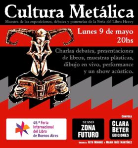 21.20 hs Cultura Metálica 7. Ponencias, debates y exposiciones de la 7ª Feria del libro heavy de Buenos Aires. Presentación oficial del nuevo libro de Clara Beter
