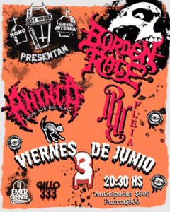 El pasado viernes 3 de junio, Burden Rage dio su última presentación en CABA (por un tiempo) y para la ocasión, Ahinco, y Pleia se hicieron presentes. La fecha tuvo lugar en El Emergente de Gallo.