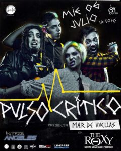 Con respecto a la presentación de Pulso Crítico en The Roxy vale destacar que el color amarrillo domino el escenario. No solo en las visuales durante el recital sino también en el atuendo de cada uno de los integrantes. Desde la trenza de Daniel Iglesias (batería) hasta el top de Aldana Salinas (voz), pasando por los detalles de la campera de cuero de Ezequiel Russo (guitarra) y la camisa leñadora de Agustín Pinto (bajo). También en la remera de la propia banda que uso Hernán Vasallos invitado a estar a cargo de las teclas.