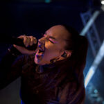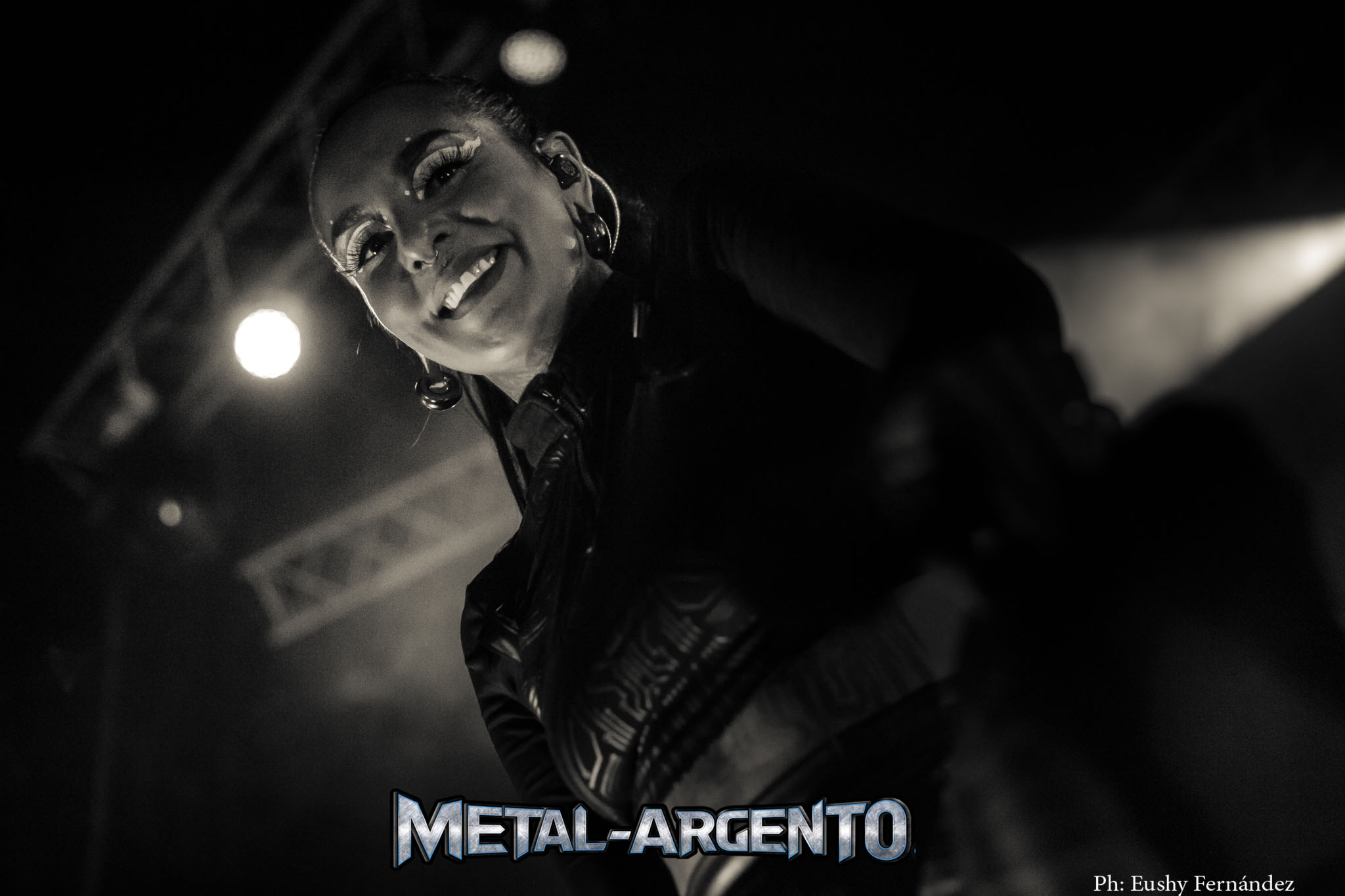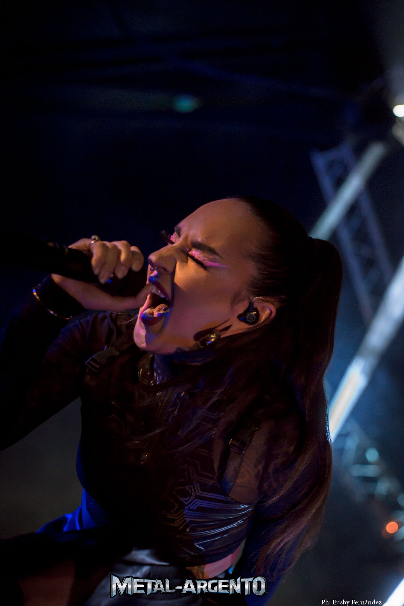 Y a las 21:30 horas, sin anestesia de por medio y con un local a un 90% de ocupación, los comandados por la siempre talentosa y atractiva Tatiana Shmaylyuk tomaron por asalto el escenario de El Teatro, tal como lo hicieron en Vorterix a fines de 2018, aunque en esta ocasión con la tipografía de Jinjer en colores azul y amarillo, característicos de la enseña de la Ucrania natal de la banda, proyectada en una pantalla detrás del set de batería de Vladislav Ulasevich. El arranque, de la mano de «Sit Stay Roll Over», dio a entender a la audiencia presente que la cosa venía picante. Muy picante. Sonido arrollador, aunque no perfecto, desde el inicio y hasta el final. Y entrega máxima por parte de los protagonistas de la noche, quienes supieron transmitir esa entrega al público, quien a su vez hizo de combustible para que la banda no afloje en ningún momento. Se sabe que la banda quedó enamorada de Sudamérica luego de su primera visita, a tal punto que el bajista Eugene Abdiukhanov se tatuó un motivo 100% latino con la frase «Latinoamérica en mi corazón» en su brazo izquierdo, durante su paso por Montevideo, Uruguay, en 2018. Por tanto, se sabía de antemano que la entrega sería absoluta. Y así fue. Recién al sexto tema del set, los ucranianos se calmaron apenas unos instantes, precisamente en los aires reggae de «Judgement (& Punishment)». Otro momento de calma, momentánea desde ya, vino de la mano del aclamado y vitoreado «Pisces», cuyo video en plan live session en YouTube tiene la friolera de 68.141.009 de vistas al momento de redactar esta crónica. Sin lugar a dudas, de los momentos más festejados de la noche. El final llegó con el rabioso «Captain Clock», pero claramente la banda no pudo despedirse tan fácilmente de Argentina, por lo que volvieron a escena y se despacharon con «Vortex», primer corte difusión de «Wallflowers», último registro discográfico de la banda. En total, fueron quince los temas ejecutados, siendo cinco los representantes de Wallflowers, cuatro de King Of Everything y Macro y dos de Micro, no habiendo sonado ningún tema de los dos primeros discos de la banda: Inhale, Don’t Breathe, y Cloud Factory. Show corto (hora y cuarto de duración) pero sumamente contundente. Desde este punto del planeta, esperamos no pase mucho tiempo sin volver a saber de estos ucranianos, quienes además de haber ascendido meteóricamente como exponentes de la música extrema moderna contemporánea, claramente se ganaron un lugar en nuestro corazón.