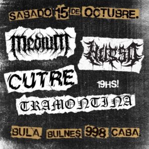 Luego de su paso triunfal por el “Thrasher Death Match Buenos Aires” Hueso se presentará nuevamente en “Club Cultural Bula”, Bulnes 998, C.A.B.A. este sábado 15 de Octubre junto a las bandas: Cutre, Medium y Tramontina.