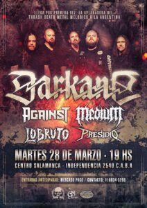 Primera vez en Argentina para los músicos suecos de Darkane. Presentando su violento, pero melódico thrash death metal, luciendo el último álbum de estudio Inhuman Spirits (2022) en el marco de su gira latinoamericana en Cetro Salamanca del barrio de San Cristóbal. Gracias a From hell fest producciones quienes fueron los operadores del evento. Representando la escena Argentina: Presidio, Lo Bruto, Medium y Against.
