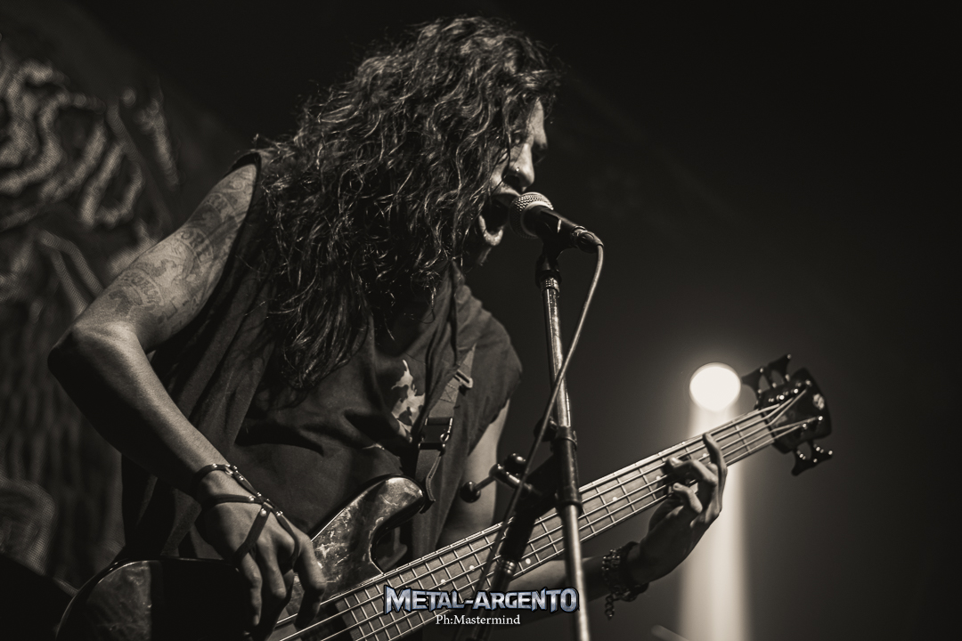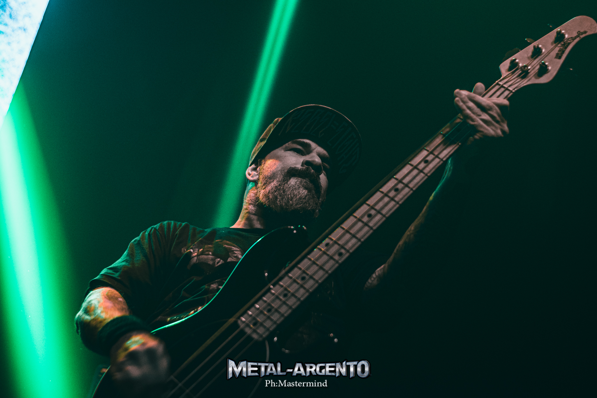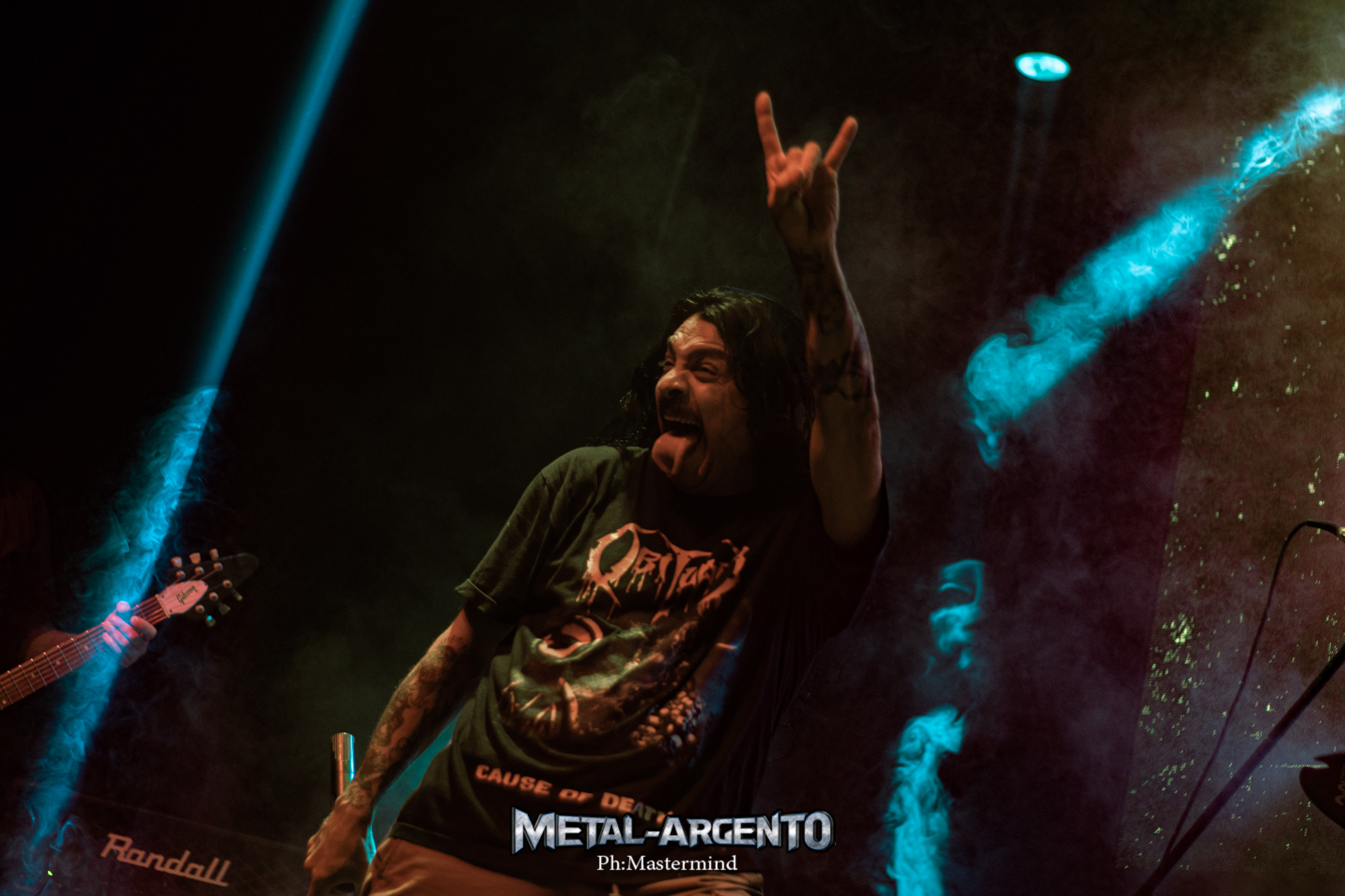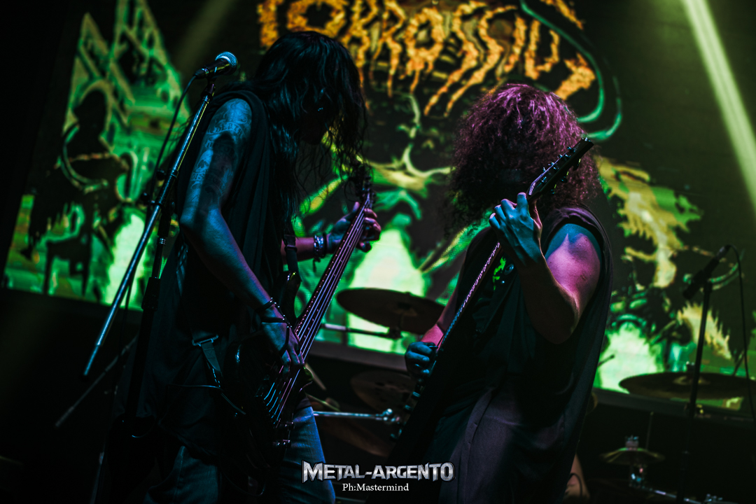 En esta oportunidad, cuatro bandas, como dije anteriormente, con voces guturales mostraron distintos sonidos actuales de la escena emergente. Corrossive como la primera en salir al escenario a las 19.30 horas viene de lanzar álbum debut The Great Beyond (2021) y propone un death metal con pericuetas thrasheras y progresivas. Y allí están dando velocidad palo y a la bolsa para quebrarse en grooves y machaques con tiempos intrincados. La adrenalina del tupa tupa se intensifica con la llegada de Adrenogore a las tablas. Si bien Angeles Justo (voz) había sido invitada en el set anterior, Emmanuel Di Giacomo también vuelve a colgarse el bajo para acompañar a esta joven banda que está a nada se editar material. Esta propuesta es un toque más visceral, una escuela más sucia y hasta con tintes tomando prestados del punk en cuanto a la rabia.