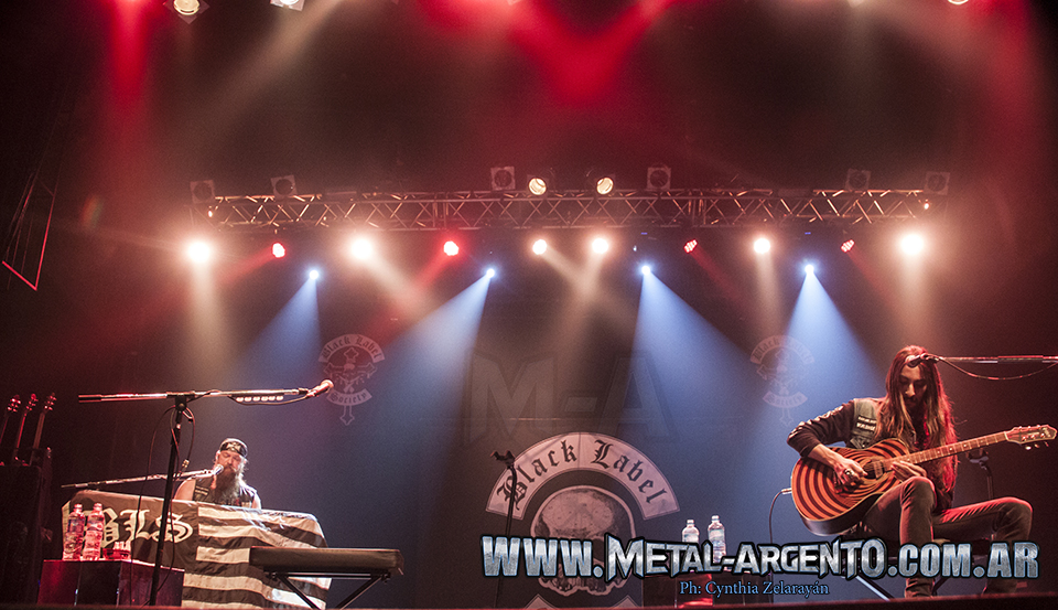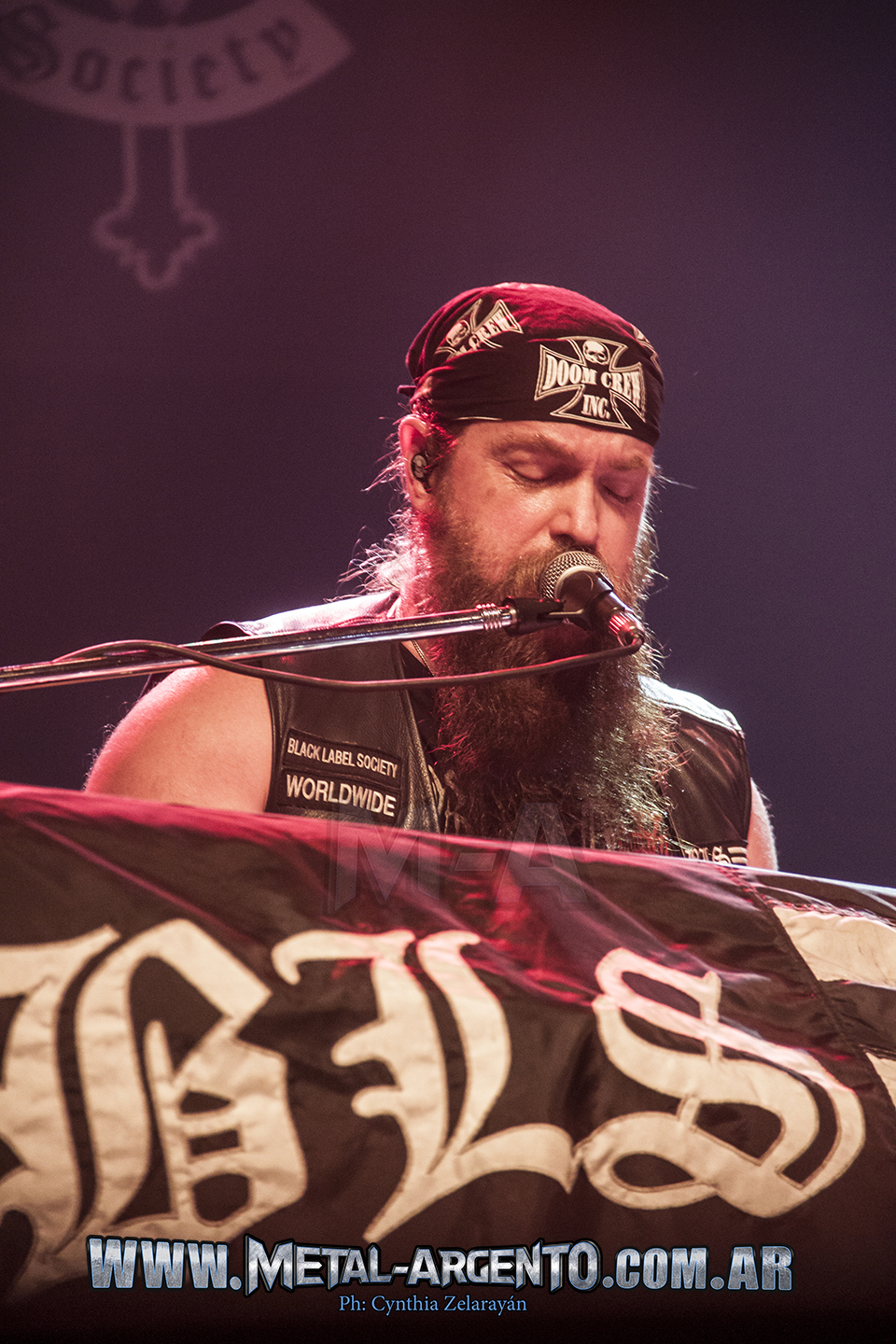 A las 21 hs puntualmente, las luces bajaron para dar pie a “Losing your Mind” con Zakk Wylde ya ubicado y sentado a la izquierda del escenario, muy sencillo y calmado, junto a otro guitarrista que lo acompañaba al lado contrario. De fondo el logo de Black Label Society y una bandera estadounidense con las iniciales de la banda sobre un teclado, Zakk se levantó para acomodarse en el teclado y hacer “Suicide Messiah” con su voz particular que es pesada, densa pero suave a la vez que enamora que las mujeres del público.