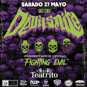 En la fresca tarde del Sábado 27 de Mayo, El Teatrito abre sus puertas para dar lugar a la presentación del nuevo material de Devilsnite de horror metal: Fighting Evil. A las 19:30hs se da acceso al local, afuera hay una larga fila de fans de todas las edades: familias, rockeros y metaleros, fans del cine horror y la música pesada. Comienza a llenarse la sala, mientras el grupo invitado D.U.A.L. (“Diferentes Universos Alternos Unidos”). Está se prepara para salir al escenario y da comienzo entonces con un sonido limpio y contundente de un estilo que abarca entre el nü metal y rock alternativo. En su segunda presentación por CABA, comienzan su repertorio, captando al público. Interpretan canciones de su más reciente álbum de título homónimo, lanzado a principios de año, y que ya está disponible en todas las plataformas digitales. Con una estética muy definida, pero sobria, todos los músicos lookeados absolutamente de negro con algunas indumentarias rasgadas, peinados y maquillados a tono siendo liderados por un potente vocal y frontman Tao Tevez; un tanto más vistoso y audaz que por momentos recuerda a Johnathan Davis de Korn. Llamativo y característico su soporte de micrófono tipo esquelético como estandarte, el maquillaje y las largas trenzas. A cargo de los instrumentos están David Sebastián en el bajo junto al batero Diego Bravo, Fabian Mendoza en teclados y sintes, además del guitarrista Diego Orellana, recientemente ingresado a la formación. Culminan su potente show superando algún que otro detalle técnico con la guitarra que no consiguió enfriar la presentación de la banda.