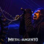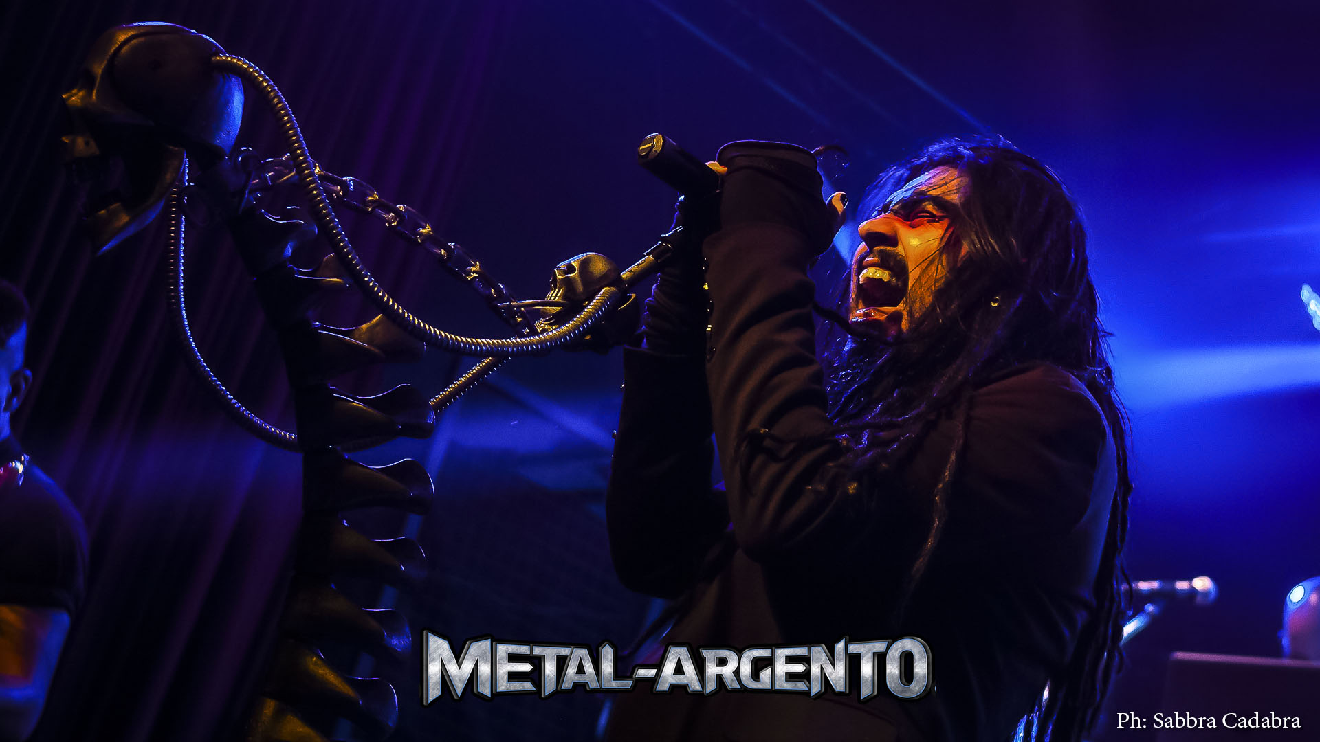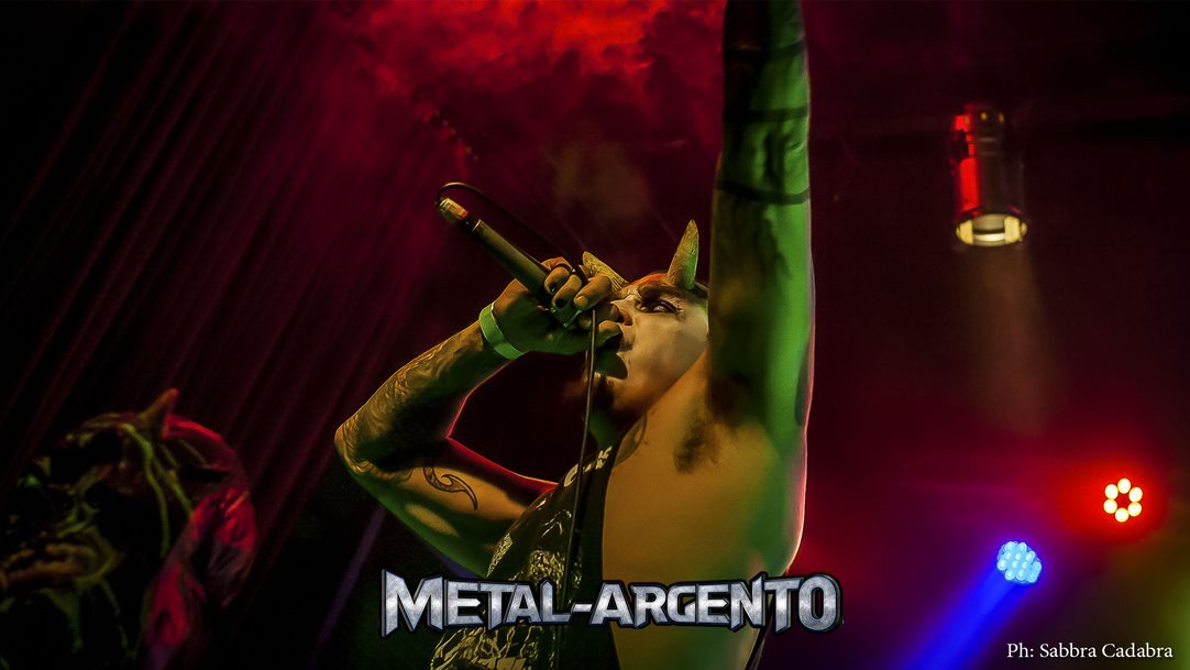 Luego de un breve intermedio de preparación logística a las 21.21 se abre el telón ya para dar paso a los headliner de la noche Devilsnite con toda potencia y gran puesta en escena. La monstruosa formación cadavérica es compuesta por: Mr. Dead en el bajo, Mr. Doom en guitarra, Mr. Boogie en batería, teclados por Mr. Freak y liderados por el cantante y guitarrista frontman el maligno Mr. Halloween. Coreados por la invitada vocalista The Bride procedieron macabramente a ejecutar las obras de su último lanzamiento de larga duración titulado Fighting Evil acompañados de un gran elenco de artistas, escenografía, efectos especiales, maquillaje y caracterizaciones de la más alta calidad. Constantes y geniales referencias a la cultura del cine horror clásico de la vieja escuela, con la presentación musical que reflejaba fielmente el audio del disco de estudio, pero el show trascendió lo musical desde el primer tema. Un despliegue completo abarcando la propuesta artística desde múltiples disciplinas como el teatro, las danzas, y la performance de los más ocurrentes, pero siniestros personajes que fueron interviniendo y sorprendiendo a la encendida audiencia. Con un sonido de guitarras bien distorsionadas y brutales riffeando un estilo bien metalero en contraste con segmentos melódicos, las voces de Mr. Halloween nos remiten a un estilo más rockero, horror punk con algunos guiños a cierta etapa de Misfits o incluso Metallica, pero sin perder la impronta propia. Sonido contundente y pesado con pegadores estribillos melódicos coreados por los fans. Al segundo o tercer tema, se produce la aparición de uno de los primeros personajes de la noche, un tipo trajeado como hombre de negocios que presume su dinero y lanza billetes al público, que luego es interceptado y llevado por la Parca. A continuación, pasan a tocar el tema que le da nombre al nuevo disco, con la invitación de lujo del cantante de Orquesta de Diablos: Valentín Martínez. Después toman por sorpresa con una versión mórbidamente adaptada del clásico de Queen que llamaron “We Will Terrify You” seguido por su tema “We Are the Dead” reivindicando la identidad de todos los espectros frikis marginales entre el público. Luego fue el turno del set Mr. Freak interpretando en el teclado introducciones de las pelis El Exorcista y Halloween, mientras una horda de zombies aparecía desde el fondo del salón y propagaba el pánico entre el indefenso público hasta trepar al escenario. Absolutamente destacable la calidad del maquillaje y efectos especiales y la actuación de los intérpretes que parecían en rigor mortis, ya dando cierre al primer acto. Continúa el show contando con el desfile de personajes macabros como Jason, de la película Friday the 13th en “Slay the Monster”, Freddy de Nightmare on Elm Street en “Never Sleep Again”, también la actuación de un exorcismo que ocurre en escena mientras suena “Devil From The Inside”. Ya alcanzando el final del set con todos los personajes anteriores en acción, más de una docena de artistas entre músicos y actores arriba del escenario cerrando con una versión del Fantasma de la Opera.