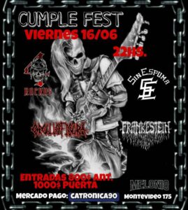 Frankestein fue el monstruo que se despertó en el comienzo de un nuevo día. Ya es un clásico de estas veladas, que ellos estén presentes poniéndole mucha alegría y mucho heavy punk que los caracteriza, hicieron un set list de siete temas en las cuales podemos citar “Magnicidio “,” Rock del más Pesado “,” Repulsión “ y “Si no hay Rebelión . Un terrible set list contundente y rápido. Hubo un momento de presentaciones, debutó como nuevo guitarrista Maríano Aguilar alias “El Bici” que por si no lo ubican, es muy característico asistiendo a los recis en su bicicleta. Culminando la performance del monstruo lo hicieron con “El Principio del Fin” para aniquilar a todos en el lugar.