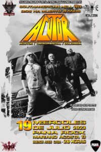 El pasado 19 de julio no fue un día como cualquiera en la Ciudad de Buenos Aires. Mientras la jornada laboral finalizaba para el común de la gente, un grupo de fieles renegados, adeptos del Thrash Metal, se reunían en Pana Rock, aquel primer piso situado en Av. Rivadavia y Mariano Acosta. El motivo: ACUTOR, la legendaria banda proveniente de Colombia pisaba suelo argentino por primera vez. Luego de un impasse de casi 20 años tras su separación en 1999, la banda volvería a los escenarios locales dando varias presentaciones en su tierra. Hoy, a casi 30 años de la salida de su único material discográfico titulado Dios ha muerto, el trío de Thrash Metal colombiano se encuentra de gira por Sudamérica.