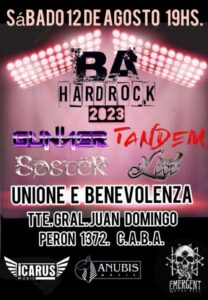 El pasado sábado 12 de agosto se llevó a cabo la edición del B A Hard Rock 2023, con cuatro bandas que se han destacado sobresalientemente en sus performance inyectando una gran dosis de hard rock contrarrestando la noche fría reinante. La cita fue en Union e Benevolenza,Tte. Gral. Juan Domingo Peron 1372 C.A.B.A.