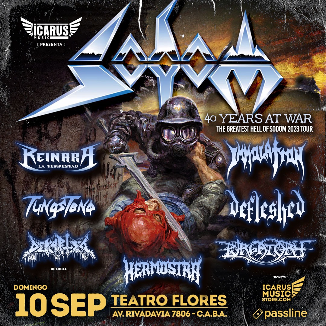 Sodom, los íconos del thrash metal alemán, vuelven para celebrar sus 40 años al frente de batalla. El Agente Naranja esta de regreso en Argentina y promete una noche impresionante recorriendo toda su discografía junto a toda una generación fanática del buen thrash metal.