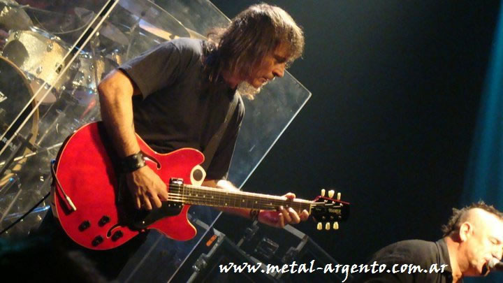 El Tano descosiendo su guitarra en el descanso de Ricardo en el medio del recital, zapando como solo él puede dos canciones.