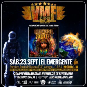 Guerra Santa, la voz empoderada que unió a Latinoamérica, salió al escenario con el gran Marino Vázquez (voz) al frente y la premisa de presentar su último trabajo discográfico llamado Éxodo: Un Nuevo Comienzo, un álbum con gran personalidad y con muchas emociones a flor de piel. El frontman exclamó fervientemente Venezuela y este grito de guerra salió desde el alma. El comienzo de la performance fue con “Náufrago”, “Mártires” y “Shangri-la.” Ante cada canción Marino muy emocionado arengaba al público para que seamos libres y luchemos por nuestros sueños a la cual el público respondió con mucha alegría. Cada canción tiene su explicación y Marino se encargó de decir unas breves reseñas de dichos temas y concientizar al público presente. Las agujas del reloj seguían su camino, el volcán en erupción de emociones seguía su curso, y llegó uno de los momentos cumbres cuando Marino interpretó el cover de Hermética “ Tu Eres Su Seguridad” y en sus manos tomó la bandera Argentina con mucho orgullo. Luego, todo pareció que terminaba la performance, el público le pidió una más y accedió, se despidió con “Arlequín” y “Guerrero de la Luz”. A las 23:35 hs finalizaron el show. Sin dudas, fue una noche de sensaciones encontradas, con bandas que han dejado todo en el escenario y han expuesto su arte musical en la gran vidriera que fue El Emergente Bar.