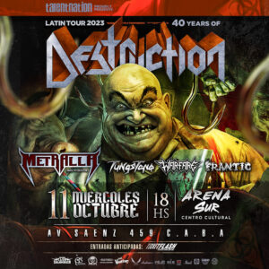 Y llegó el momento esperado: Destruction. O «Destrucción», como vitoreaban algunos. A esta altura de la noche, la gente se arenga con facilidad, el público hace lugar al instante para un circle pit que comienza a ser circulado por los reincidentes pogueros del día, y arranca «Curse of the Gods» para descontrolar la escena. Con un Schmier al frente y a Martín Furia jugando de local, la banda ejecutó un set de 16 temas, repasando y demostrando por qué tras cuarenta años de carrera Destruction sigue siendo una máquina afilada y lacerante de thrash metal germano. La apertura siguió con «Death Trap» y «Nailed to the Cross». No faltaron «Mad Butcher», «Thrash Attack» ni «Armageddonizer». Tras un encore compuesto por «Diabolical», «Total Disaster» y cerrando de la mano de «Thrash ‘till Death», la banda finalizó su presentación en una gran fecha con exponentes nacionales y con un gigante del thrash metal que nunca decepcionan.