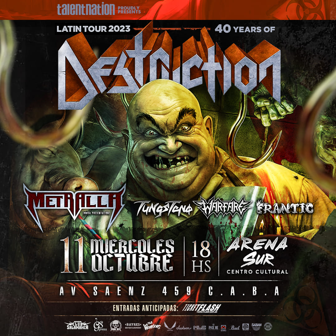 Destruction celebró sus 40 años en Argentina. La cita fue a las 18hs en Arena Sur, ubicado sobre la Av. Sáenz en Parque Patricios, una nueva propuesta de venue que obra de cancha local para los organizadores, From Hell.