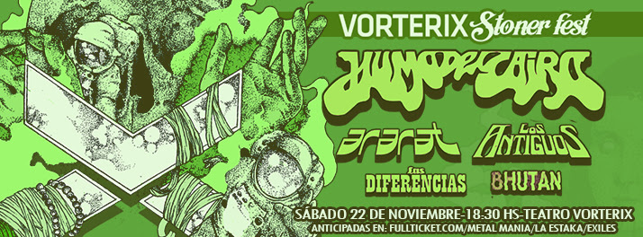 El sábado 22 de Noviembre tuvo lugar la primera edición del Vorterix stoner fest, y vaya si fue un exito. Una gran cantidad de público se congregó desde temprano en el recinto de Lacroze y Alvarez Thomas para disfrutar de una grilla que presentaba a Bhutan, Las Diferencias, Los Antiguos, Ararat y Humo del Cairo.