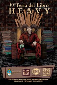 El sábado 4 de noviembre de 2023 a partir de las 14.30 hs hasta las 21 hs se realizará la 10º Feria del Libro Heavy de Buenos Aires en Casa Rincón, (Rincón 1330), Bs. As. Argentina. La entrada es libre y gratuita.