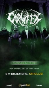 Carnifex, los nuevos amos de la escena deathcore, se presentarán por primera vez en Argentina en el marco de la gira presentación de su noveno álbum Necromanteum. La cita es el 5 de diciembre en Uniclub, Guardia Vieja 3360, C.A.B.A.