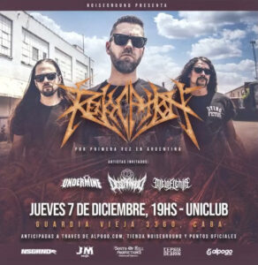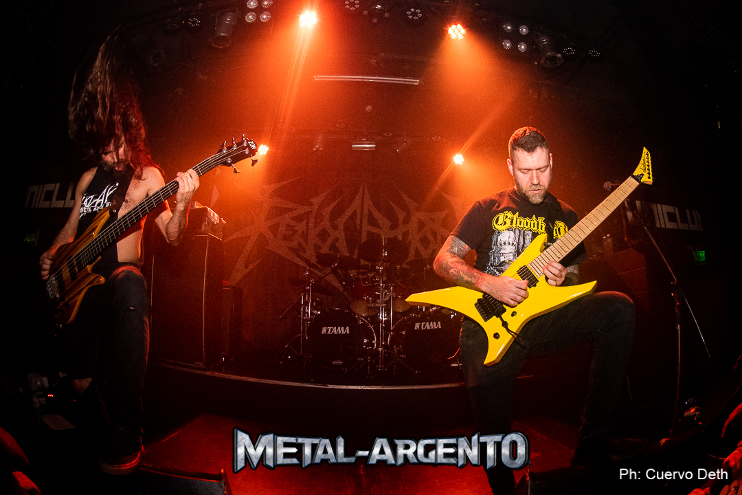 Melofrenia salió a horario para comenzar a calentar el escenario y el recinto, que mostraba a los primeros en adentrarse. La voz poderosa de León Pardo y el death metal melódico que propone la banda, fueron el plato ideal para arrancar la noche del jueves. El siguiente acto, fue el de Descarnado. Mas brutalidad y mas tecnicismo, una banda que juega mucho con las atmósferas y los climas. Su más reciente trabajo es Enajenación, del pasado año 2022, y marca el lanzamiento número tres de la banda. Su cantante y guitarrista, Ivan Suárez, no dejó pasar oportunidad para bancar al metal nacional y para festejar la fecha con Revocation. La última banda nacional fue Undermine. En tanto estilo, la que mas se asemeja a lo que son los estadounidenses. Thrash filoso, con riffs galopantes, intrincados y machacosos. Las primeras rondas, aunque aun tímidas, comenzaron a formarse. Franki Cañardo no oculto su felicidad por estar tocando previo a Revocation y la banda llevó a cabo su repertorio conformado por temas de diferentes trabajos de la banda, siendo el último el EP del 2021 Undermine IV.