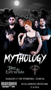 El pasado 17 de febrero de 2024 en El Marquee (Scalabrini Ortiz 666 C.A.B.A) ocurrió la primera presentación del año de la banda Mythology. Junto a los santafesinos de Único Recurso y los bonaerenses de Voz de Estruendo nos regalaron una noche-trasnoche con distintos condimentos musicales, pero con un horizonte bien definido: el heavy y el power metal.El comienzo fue con Voz de estruendo; una agrupación que viene con una gran supremacía desde el norte del conurbano con una trayectoria de más de 20 años dejando su sello propio en cada presentación siguiendo la línea clásica de la legendaria banda Renacer. Leonardo Gonzalez en la voz se encargó de llevarnos por distintos senderos musicales, desde el heavy metal a las chapas, rápido y contundente, a la faceta melódica para crear distintas atmósferas en la cual el público fue sumergido en ese lapso que duró la performance. Sin dudas, un eco de metal que trascendió en la noche.