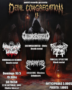 El metal extremo volvió a rugir en Bahía Blanca el pasado 10 de marzo durante la quinta edición de la Devil Congregation, organizada por Matias Carrasco, productor de Putrid Records y su equipo de trabajo.