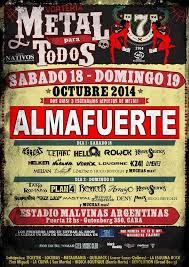 Almafuerte dio un concierto acelerado, adrenalinico y contundente. El show comenzó con «Patria al Hombro», «De La Carne» y «La Máquina de Picar Carne». Lamentablemente no se vio el predio lleno como otros concierto de Iorio y compañía vaya uno a saber porque, aunque se pueden sacar varias conclusiones. Todo el día fuera de casa, muchos pequeños, familias y sumado a que Almafuerte cerraría ambas fechas son algunas de las ideas que se pueden llegar a pensar. «Por Nacer» despertó emoción en los presentes, pero uno de los momentos culmines se vivió cuando «Mi Credo» tuvo un épico final eléctrico. Bin Valencia y Ceriotti se sumaron para dar un cierre increíble. Muy animado Ricardo siguió presentando temas como «Del Mas Allá» haciendo alusión a la muerte de su amigo el Negro García López. Clásicos de Toro y Pampa, también desfilaron como «Pensando en Llegar». El final llego bajo un tridente efusivo y violento «Almafuerte», «El Pibe Tigre», a pedido del Tano previo al recital según Iorio y el himno a la amistad «A Vos Amigo». Almafuerte cerró la primera fecha del Metal Para Todos levantando bien alto la bandera para seguir evitando el ablande.