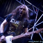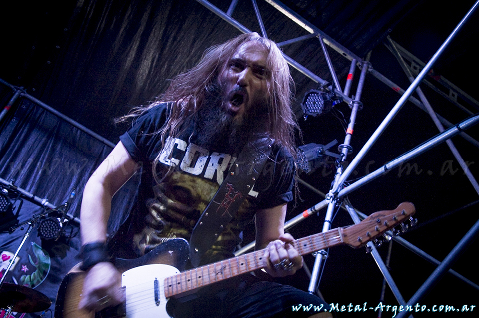 El tiempo pasaba pero nuevamente el thrash invadió el escenario principal, Serpentor se encargó de que las huestes del metal despierten su lado más violento para fomentar las rondas mientras sonaban «Privación Ilegítima De La Libertad» y «Enfermo Poder». Sin embargo en el escenario Gustavo Rowek, ocurrió algo completamente distinto Arraigo presentó su particular Folk Metal. Sin recurrir a la cultura nórdica Arraigo crea un metal que se mezcla con el folklore de nuestra región, con charangos y murgas incluidas. De gran propuesta tanto en lo musical como en escena se animaron a presentar un metaltango, que lamentablemente conto con algún que otro problemita, para cerrar con «Carnaval de Soledades» logrando una gran respuesta de los presentes. La racha de homenajes siguió dentro del recinto. Pero ahora era el turno de Tano Romano que presento temas como «Ayer Deseo, Hoy Realidad» y «La Revancha de América» ambos de Hermética, en donde hizo referencia a aquellos que le piden que no haga más estos tributos aunque también dio un espacio para presentar un tema nuevo «1972». Afuera hubo Hard Rock en su estado más puro de la mano de Buenos Aires, destacándose temas como «Septiembre Pesado» y «Sangre» sin embargo en el escenario restando la brutalidad personificada se hallaba. Si Mastifal se concentraba en dar un demoledor. «Ojos de Buey» y «Amo de las Horas» rompieron cráneos. Ya para disfrutar la última etapa del festival fui rápidamente a la presentación de Coral. Impecable, distorsión al palo con mucho groove por momento algo de metal sureño viola de siete cuerdas y temas que te sacuden el cuerpo entero como «No Hay Perdón». En el escenario Ricardo Iorio se encontraba su ex banda Tren Loco que baso su set en su última placa Vieja Escuela aunque sin dejar clásicos de lado por eso se alternaron «Pueblo Motoquero», «Cuatro Vientos», «Artilleria Pesada» y «Barrio Bajo». Como destino final de la recorrida me acerque al escenario dos, donde Plan 4 daba un aplanante show. Primero temas de En Mil Pedazos, después un recorrido por Horizonte Rojo Sangre, Cambio de Piel y Dos Caras. El agite en temas como «Ella», «Mi Religión» y «Último Recurso» fueron de los violentos del día levantando una tormenta de tierra y como si fuera poco Joaquín Amat en el medio de la ronda registrando todo con su cámara. Llego y el final, Knario nos invitaba a volver al escenario principal donde Almafuerte se encontraba presentando su set para dar cierre a la segunda y última jornada.