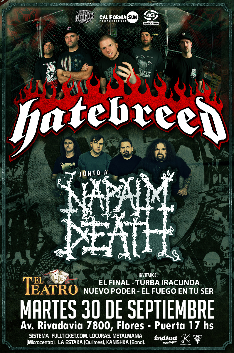 A los que no estaban informados de los acontecimientos previos al show, cabe aclarar que Napalm Death iba a oficiar de show apertura para una de las bandas hardcore por excelencia: Hatebreed. El problema/desilusión sucedió 24 horas antes del recital se dio a conocer que Hatebreed no se presentaría en Argentina por asuntos familiares de Jamey Jasta, líder de los de Connecticut. Esto ocasionó varios cambios inesperados: Napalm Death pasó a ser el acto principal de la noche, teniendo que improvisar una lista de temas del doble de duración de lo previsto. El show en lugar de ser en el Vorterix se realizó en el Roxy. Todos los que nos habíamos quedado con ganas de más Hatebreed, luego del excelente show que dieron en el 2012 teloneando a Lamb of God, íbamos a tener que seguir esperando. También quiero aclarar que, si bien me gustan muchas de sus canciones, no soy ningún fanático/experto en Napalm Death, por si en la siguiente crónica confundo algún dato relacionado a la banda. Sí, yo también soy de los que esperaban mayormente a Hatebreed.