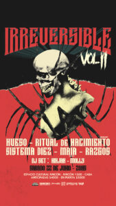 El Irreversible Vol. 2 será el punto de reunión de estos grandes exponentes, y se llevará a cabo en el Espacio Cultural Rincón, ubicado en Rincón 1330, Barrio San Cristóbal, Capital Federal, el sábado 22 de junio a partir de las 20 horas. Además de SISTEMA DIEZ, MAIA y RITUAL DE NACIMIENTO, se estarán presentando los experimentados Hueso y los potentes Razgos abriendo la noche. Dos DJ’s, MOLLY y NINJAH, amenizarán la noche entre banda y banda.