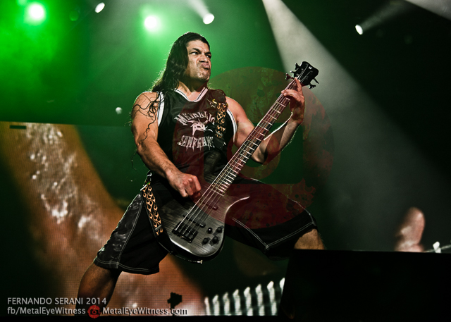 Rob Trujillo tuvo su pequeño momento personal con el solo de bajo, aunque bien sabido es que podría mostrar mucho más sus habilidades con el instrumento, algo contenidas en Metallica. En una noche cargada de temas lentos, no podía faltar “Fade to black” (¿la primera balada hecha por una banda de thrash?), con James encargándose de la acústica desde la tarima al fondo del escenario. Pero el momento culmine de la noche fue indudablemente “…and justice for all”, la épica pieza de casi diez minutos ubicada estratégicamente en la mitad del setlist, interpretada por primera vez en nuestro país. Otro clásico infaltable fue “One”, esta vez (afortunadamente) sin los fuegos artificiales característicos de la intro. La eterna sucesión de clásicos brindaba una fuerte intensidad, del disco Ride the lightning, “For whom the bell tolls” y “Creeping death” continuaban desatando la locura general. Tras un breve solo de Kirk, llegó el momento que en otra época hubiera rebosado de encendedores prendidos con “Nothing else matters”, para engancharla y retirarse con “Enter Sandman”, el clásico que aunque parezca haber aburrido a muchos, en vivo no deja de ser el tema más festejado y saltado por todo el mundo.