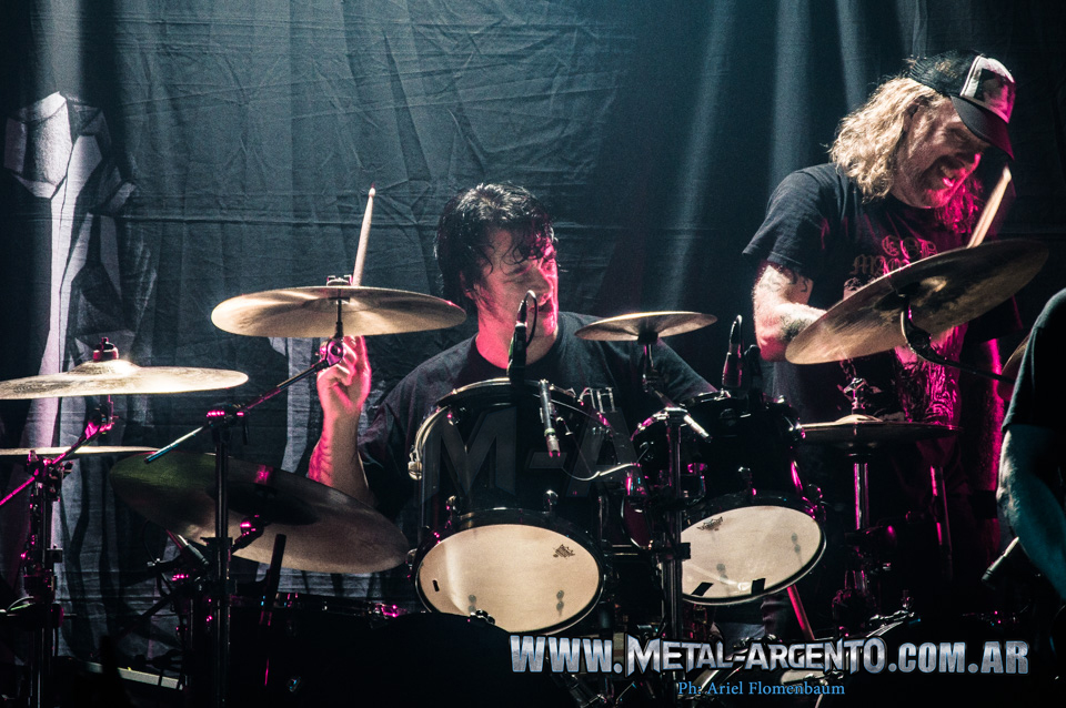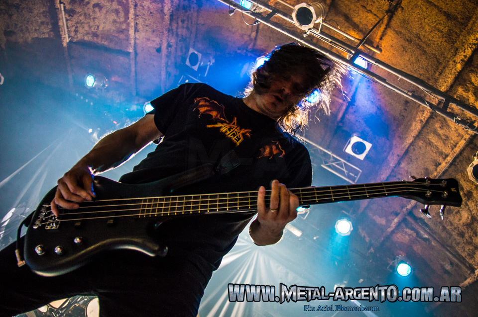 La última banda nacional en dejar el escenario super caliente para los suecos fue Matan S.A., asiduos soportes de las bandas extremas extranjeras. El conjunto de la ciudad de Claypole, en el sur del conurbano bonaerense, desplegó el death metal rudo y violento al que nos tienen acostumbrados. Adornados con harapos ensangrentados y con líricas en español sobre asesinatos, sangre y horror, los liderados por Wata se desataron con clásicos como “Vuelvo a saciar mi sed” y “Panic attack” de Parte I: La matanza está por comenzar (2010). También sonaron temas como “A decapitar”, “Masacre en Claypole” y “Estás enterrada” de su segundo disco: Parte II: El Silencio es Salúd (2013).