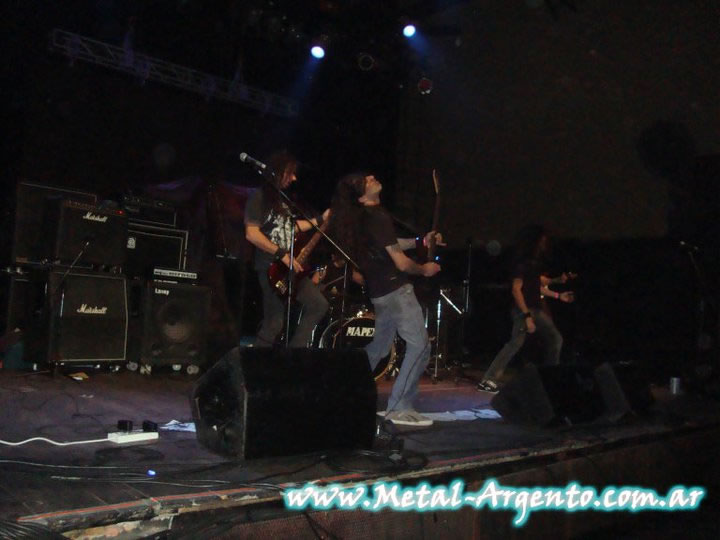 Y cuando el sol empezaba a volverse tedioso se me permitió el ingreso al lugar, para aquel entonces el telón se abría nuevamente y la banda en salir a escena era Feanor, integrada por el pequeño Maximiliano Basualdo en voz, Walter Angelus en la guitarra, Gustavo Acosta en el bajo y Matías Pena en la batería. Feanor hace un Heavy bien tradicional, pudiendo citarse como referencia a bandas como Judas Priest, Iron Maiden, Manowar, Accept y la tributada en esa tarde, la banda de culto alemana, Attack. Muy buen detalle el de Attack. Una banda veloz y con buenos arreglos en la guitarra, pero que por momentos se pegaban alaridos a corregir.