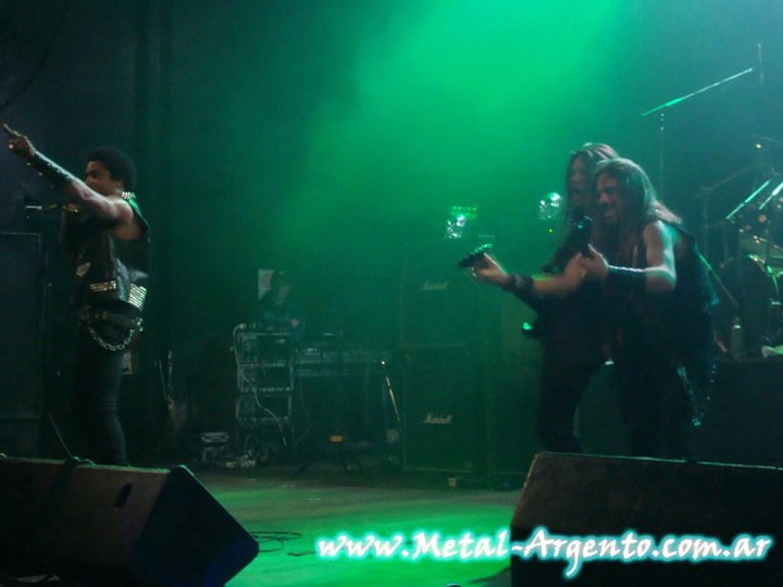 Con el recinto a menos de la mitad de su capacidad el show del ahora cuarteto arrancó con el demoledor «Baptized by Fire» y le siguieron temas como «Lucifer’s Inferno», «Hate, Fear and Power», «Hostile Territory», «Blind Fate», «The New Age Of Terror», «Destroy», «Kill switch», «El Diablo Negro» (previo discurso de Iacobellis), «Baptized by Fire», «Walk With Death», «The Plague», «Broken Neck», «Bombs Of Death», para cerrar con «Asassins of War».
