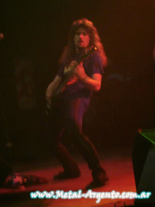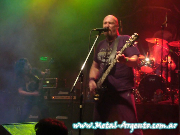 La banda estadounidense con más de treinta años de historia, en esta ocasión sin el legendario Edward Pursino, estuvo conformada por el más legendario aún David DeFeis en voz, Joshua Block con su guitarra de siete cuerdas (que en esta ocasión tuvo que bancarse no solamente sus propios solos sino que también tuvo que cubrir las ausencias de la primera guitarra y el bajo), Frank Gilchriest en la batería, y para salvar parcialmente la ausencia del bajo y una guitarra, se recurrió a una señorita muy bonita que ocupó su posición detrás de los teclados.