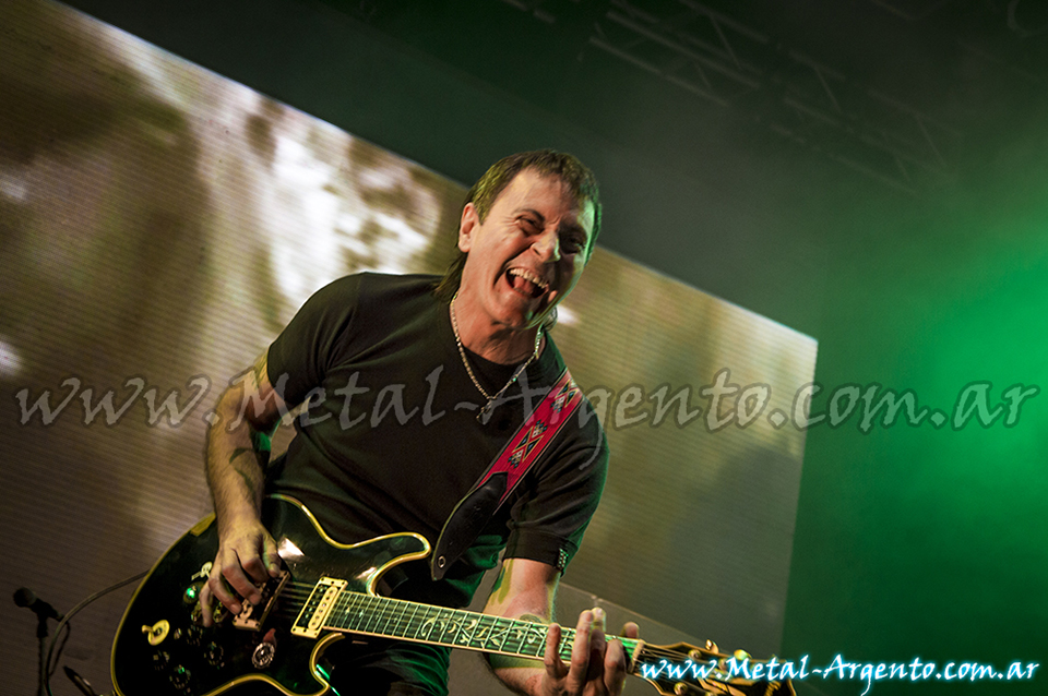 De todas formas, había más porque quedaban tres discos de esta primera parte para repasar. Los temas siguientes son pertenecientes al disco “Piedra libre” que salió allá en el 2001 y el primer tema en sonar de esa placa fue “Orgullo argentino” mostrando toda la virtud de Claudio Marciello que con el paso del tiempo toca cada vez mejor, no hay duda que es uno de los guitarristas más completos y virtuosos del país. Seguido, “Sirva otra vuelta pulpero”, tema perteneciente a la banda uruguaya Cuchilla grande se adentró en el canto de toda la gente para darle lugar a “Las aguas turbias”. Para terminar con los temas de este disco, Almafuerte tocó “Regresando”, un tema que hace muchísimo tiempo que no lo tocaba. Por mi parte me hubiese gustado escuchar más temas de este disco como Por ser yo, Allí en San Juan o De un mañana bajo tierra en lugar de canciones de sus últimos dos discos que son habitúes en el repertorio de la banda. Sin embargo, la primera parte del show fue excelente.