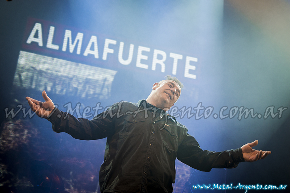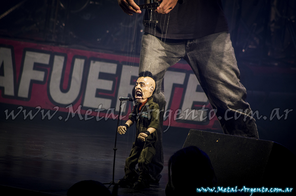 Almafuerte se hizo presente una vez más en el Estadio Malvinas Argentinas, en un show que da cierre al repaso de su discografía, el cual había iniciado el sábado previo en el mismo lugar. Ambas fechas fueron complementarias, y las listas de temas fueron distintas casi en su totalidad, centrándose en este segundo show en sus discos Del Entorno, A Fondo Blanco, Ultimando y Trillando la Fina, sin dejar de pasar por algunos de sus clásicos de sus discos Almafuerte, Piedra Libre y Toro y Pampa. Previo a la salida de la banda, para ir entrando en calor, se hicieron presentes Las Marionetas Viajeras, una representando a Ricardo Iorio y la otra al “Tano” Marciello, que con los clásicos de Almafuerte de fondo se llevaron los primeros aplausos de la noche. Una vez que se retiraron las marionetas, ingresó la banda que nos haría pasar una noche excelente, ante un Malvinas lleno, Almafuerte estaba en el escenario y arrancó con “Por Nacer” y “1999” del disco “Del Entorno” seguidos por “Hombre Peste” y “De la Carne” también del segundo disco de la banda, siempre acompañado por el coro del público tan entusiasta que los caracteriza.